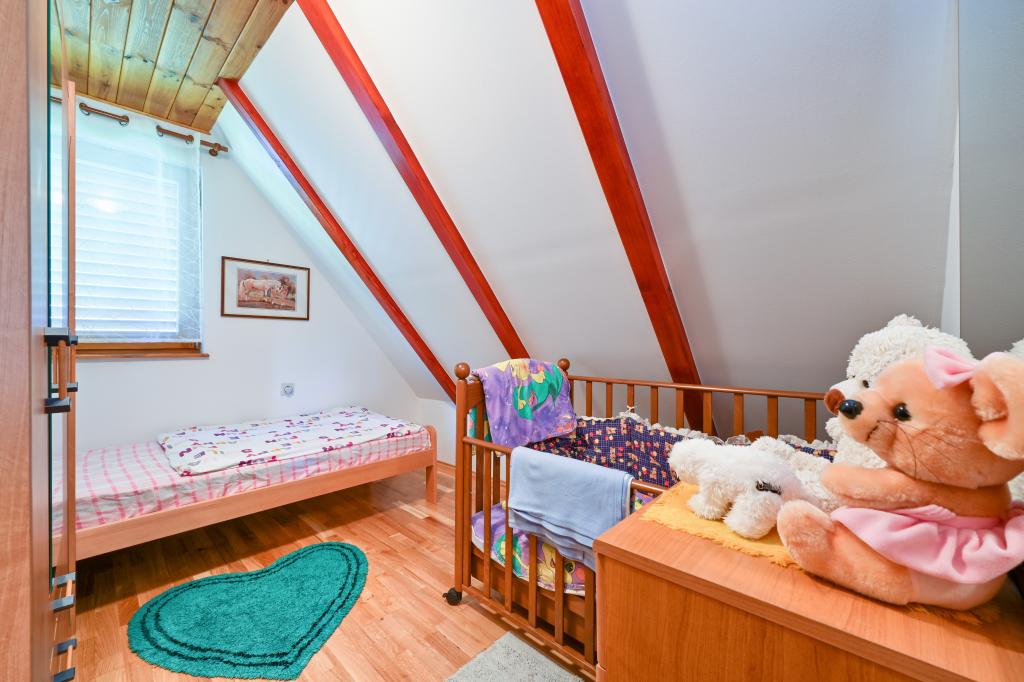 Dom wakacyjny Rukova Hiža Rukova Hiža jest urządzony jako połączenie przeszłości i teraźniejszości, dolna część jest odnowiona w starym stylu, a poddasze jest urządzone w stylu teraźniejszym z nowoczesnymi meblami i materiałami, każdy znajdzie coś dla siebie. Zakwaterowanie dla 4 osób w trzech pokojach (+ łóżeczko). Dostępna jest w pełni wyposażona kuchnia. Łazienka + dodatkowa toaleta Darmowe wi-fi, IPTV. Na podwórku i dwóch tarasach znajduje się grill. Dom składa się z parteru, na którym znajduje się łazienka, kuchnia oraz salon z obszernym stołem mogącym pomieścić dziesięć osób, natomiast na poddaszu znajdują się trzy sypialnie i łazienka. W pokojach znajduje się podwójne łóżko, dwa łóżka i łóżeczko dziecięce. Wszystkie pokoje wyposażone są w pościel, odbiornik TV, sygnał wi-fi. W bezpośrednim sąsiedztwie Term Jezerčica i Terme Stubičke toplice Schronisko Gupčevy Żyjący arcybiskup Gupčevy lipy Kaplica św. Krzyża Gupčeva lipa Muzeum i zamek Człowiekowi bardzo niewiele potrzeba do szczęścia, a to dziwne, jak mało potrzebuje tak często