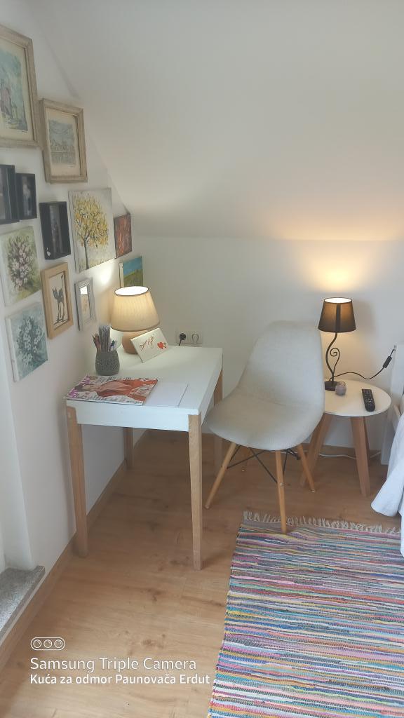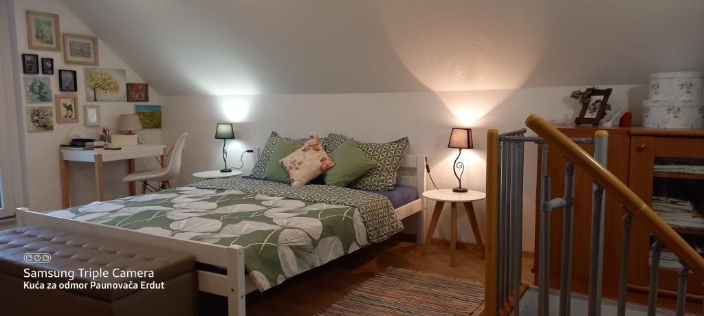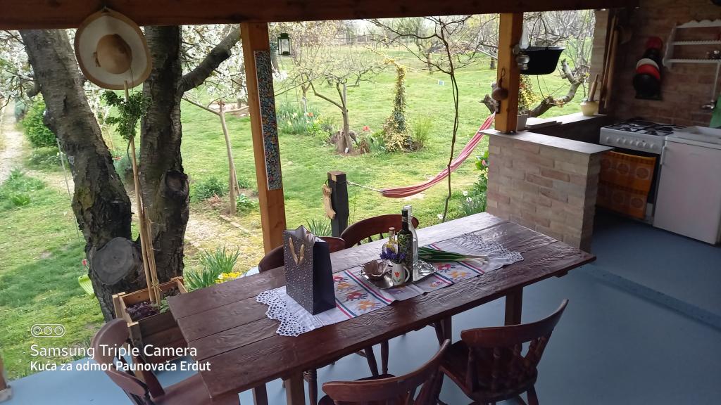 Paunovača Erdut znajduje się w miejscowości Erdut, nad magiczną zieloną promenadą Zielona Ścieżka Dunaju. To dom wakacyjny, który urzeka komfortem, szczegółami, dyskrecją i daje poczucie drugiego domu. Dom posiada jedną sypialnię z podwójnym łóżkiem (koncept otwarty), mniejsze łóżko w drugim pokoju i rozkładaną sofę w salonie. W kontynuacji salonu znajduje się jadalnia oraz wyposażona kuchnia (z wyjątkiem zmywarki i kuchenki mikrofalowej). Dla gości zawsze dostępne są bezpłatne gorące napoje, kilka rodzajów kawy i herbaty. Na przestronnym podwórzu znajduje się zadaszony taras z ogrodowym grillem, a w cieplejszej części roku ogród z ekologicznymi warzywami i owocami. Do dyspozycji gości bezpłatny parking oraz WI FI. Dom położony jest w idealnym miejscu dla miłośników aktywnego wypoczynku na łonie natury, znajduje się w bezpośrednim sąsiedztwie zejścia do Dunaju, szlaków turystycznych, schodów zdrowotnych, niedaleko Starej Wieży w Erducie. Powitanie!