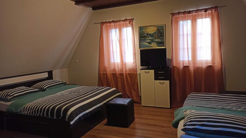 Czytaj więcej KwaterPrzy rezerwacji 20% kwoty rezerwacji, reszta płatna po przyjeździe. Zameldowanie o godzinie 13:00 Wymeldowanie o godzinie 10:00. W przypadku rezerwacji grupowych śniadanie i kolację można uzgodnić z wyprzedzeniem. Prosimy o kontakt przed przyjazdem.
