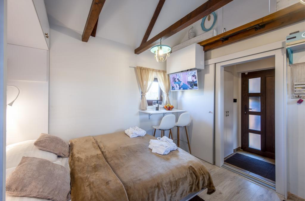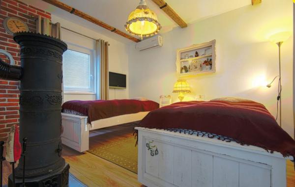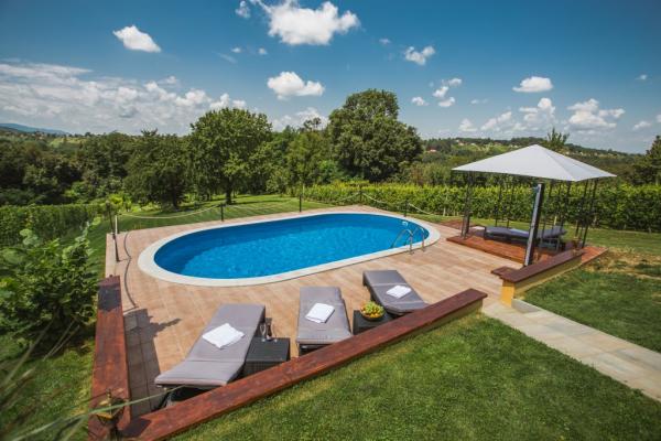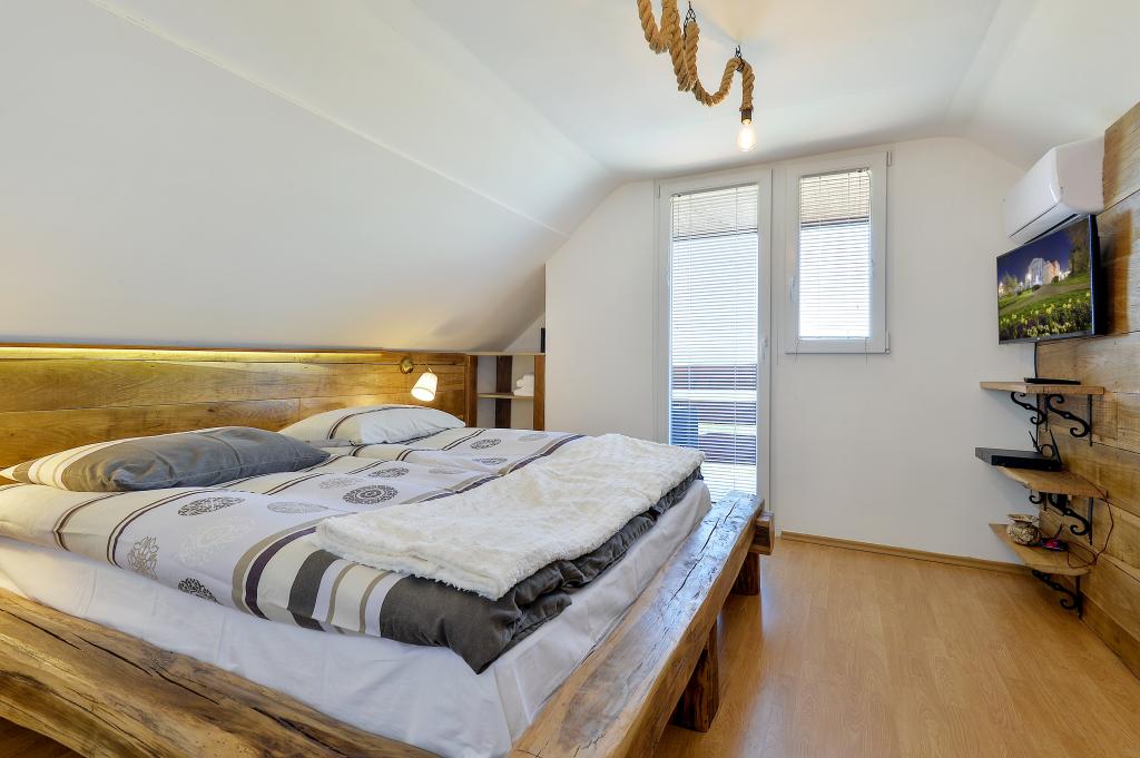 Ten piękny dom wakacyjny położony na wzgórzu, otoczony łąkami i winnicami, zapewni Państwu przyjemny wypoczynek. Dom urządzony jest w autochtonicznym stylu, a autochtoniczna drewniana chata została przekształcona w salon. Do dyspozycji są dwie sypialnie, z których jedna jest przechodnia z osobnym wejściem zewnętrznym, a do drugiej o najniższej wysokości 100 cm prowadzą strome schody. Do dyspozycji Gości jest również zadaszony taras, na którym można przygotować posiłki z grilla, a tuż obok znajduje się basen, w którym można ochłodzić się w upalne letnie dni. Odwiedź miasto Varaždin z licznymi zabytkami.