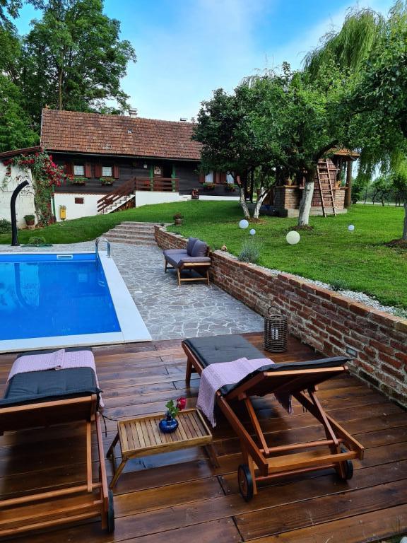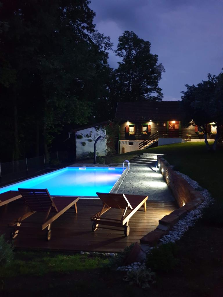 Hižica Krijesnica znajduje się na cichym, oswojonym wzgórzu niedaleko Zagrzebia, w Kupljenovo. Jest idealny na rodzinne wakacje i jest wyposażony dla 5 osób, w razie potrzeby z łóżeczkiem. Jest wynajmowany na minimum dwie noce i jest dostępny przez cały rok. Składa się z kuchni, salonu, łazienki i sypialni o łącznej powierzchni 70 m2, aw piwnicy znajduje się pokój relaksacyjny z jacuzzi o powierzchni 21 m2. Pościel, ręczniki do higieny osobistej, ręczniki na basen oraz szlafroki są w stałej ofercie bez dopłaty. Na ogrodzonym podwórku znajduje się podgrzewany basen o wymiarach 8x4, podgrzewany od 01.05 do 15.10, z przestronnym miejscem do opalania, leżakami i zewnętrznym prysznicem solarnym. W drewnianej, zadaszonej altanie znajduje się piekarnik i sprzęt do grillowania, zlewozmywak oraz drewniany stół i ławki. Dla najmłodszych przygotowano drabinki, huśtawki, altankę i różne gry planszowe.