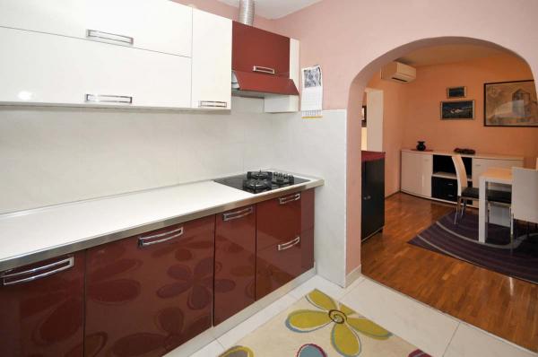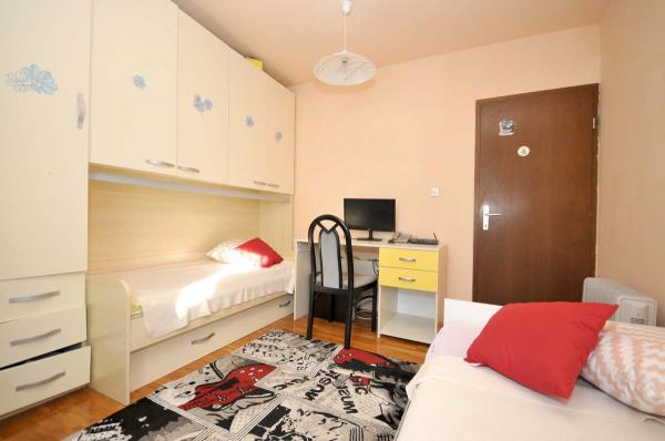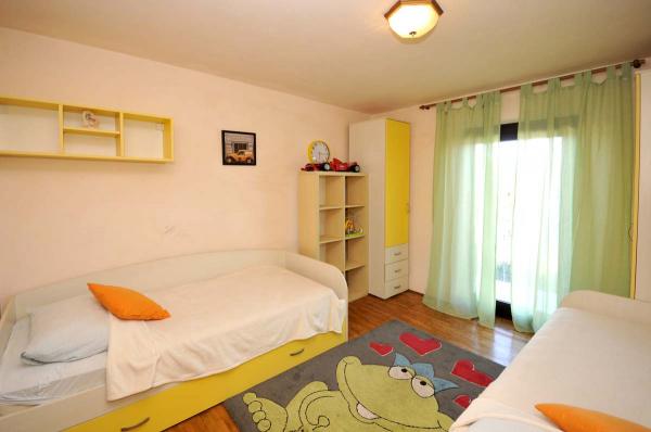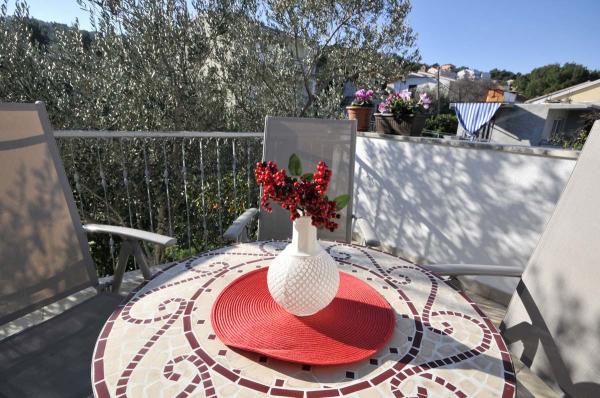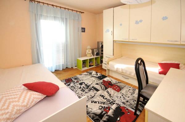 Mieszkanie znajduje się na skraju Arbanija i Slatina na wyspie Ciovo. Położony nad morzem, po prawej stronie drogi w kierunku Slatine / 50 m od supermarketu Tommy Ulica Narodowe Święto Dziękczynienia 97 i 4000m od centrum Trogiru, który jest pod UNESCO. Mieszkanie posiada 4 pokoje (każdy z podwójnym łóżkiem), przestronny pokój dzienny, jadalnia, kuchnia, łazienka, WC i jest odpowiedni dla 6 osób. Apartament znajduje się w rodzinnym domu, na drugim piętrze i ma osobne wejście. Od morza wynosi 20 m od plaży z kawiarni 50 metrów. Jest on wyposażony w MAX-TV, klimatyzacja, zmywarka. Parking przed domem. Posiada dwa tarasy z pięknym widokiem (duży taras z widokiem na morze). Grill jest dostępny. Ciesz się tym piękne, nowoczesne, przestronne mieszkanie, piękne zachody słońca i widok na Kastela i Split. Kilka kilometrów od Slatina znajduje się klasztor Matki Bożej Prizidnice, blisko morza i otoczony lasem sosnowym.