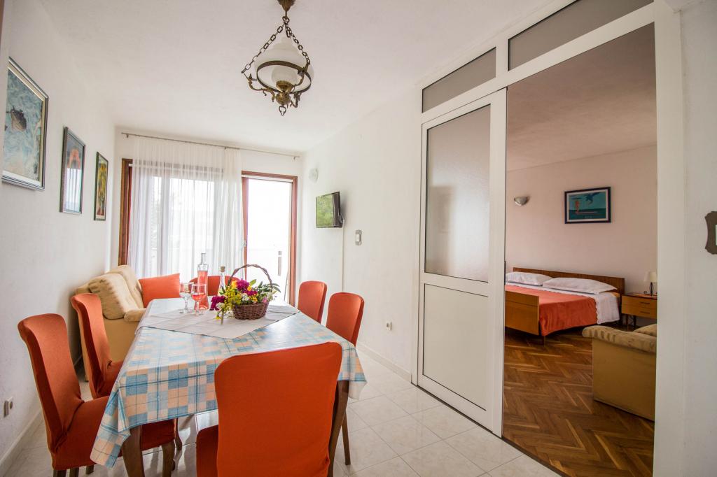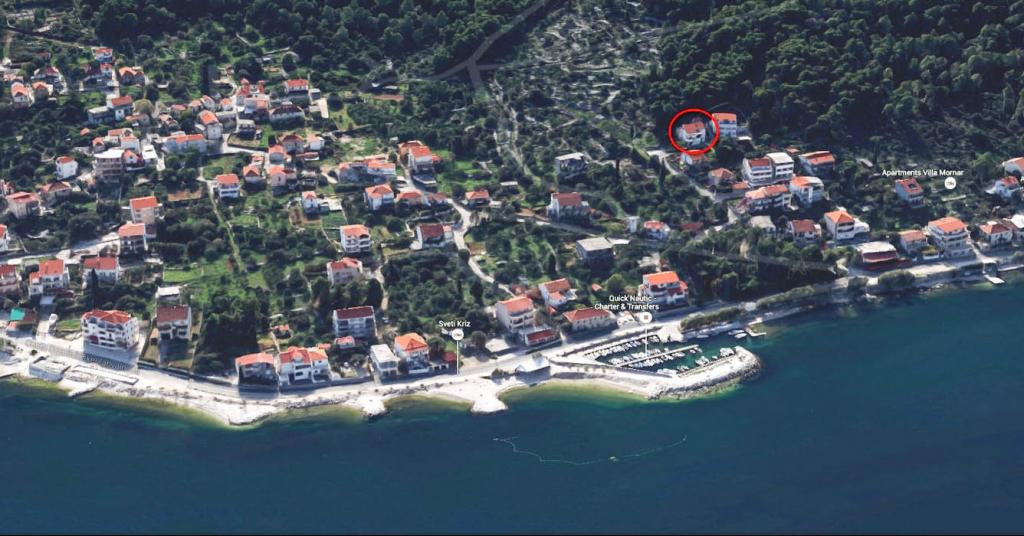 Apartament Lemaic znajduje się w Arbanija na wyspie Ciovo, która jest połączona mostem z miastem Trogir. Znajduje się na pierwszym piętrze domu rodzinnego, ma osobne wejście i dużą powierzchnię 72 m2. Składa się z dwóch pokoi dwuosobowych i jednego pokoju z dwoma łóżkami, jadalni, kuchni, łazienki i balkonu. Apartament posiada również wschodni taras z pięknym widokiem na morze, zatokę Kastela i miasto Split oraz zachodni, mniejszy taras z prysznicem na zewnątrz. Mieszkanie jest w pełni wyposażone na komfortowy pobyt 6 osób. Jest klimatyzowany, ma telewizor i antenę satelitarną oraz możliwość korzystania z połączenia internetowego (Wi-Fi). Dom znajduje się około 150 m od morza i 400 m od supermarketu. Posiada własny parking z dwoma miejscami parkingowymi dostępnymi dla gości. Południowa strona domu graniczy z gajami oliwnymi i sosnami, dzięki czemu jest odpowiedni do odpoczynku i przyjemności dla tych, którzy chcą ciszy i spokoju w cieniu tarasu.