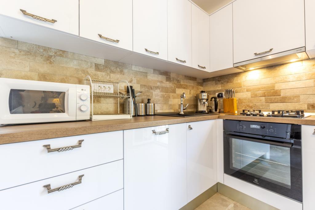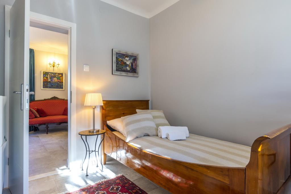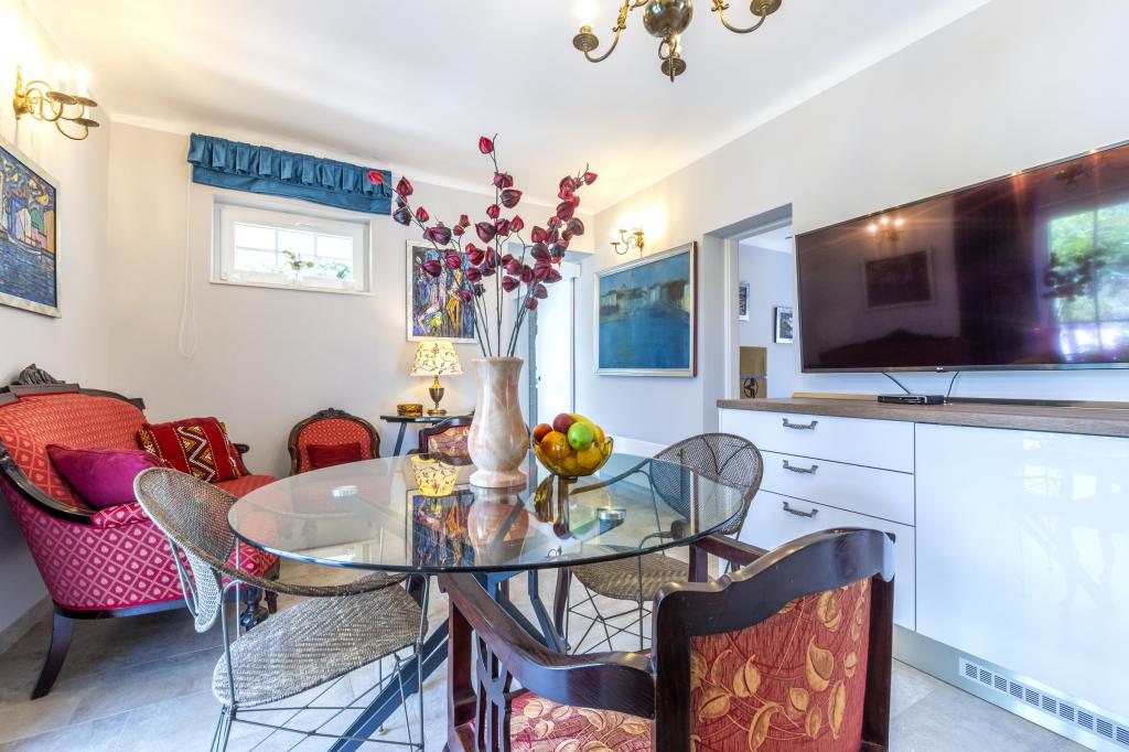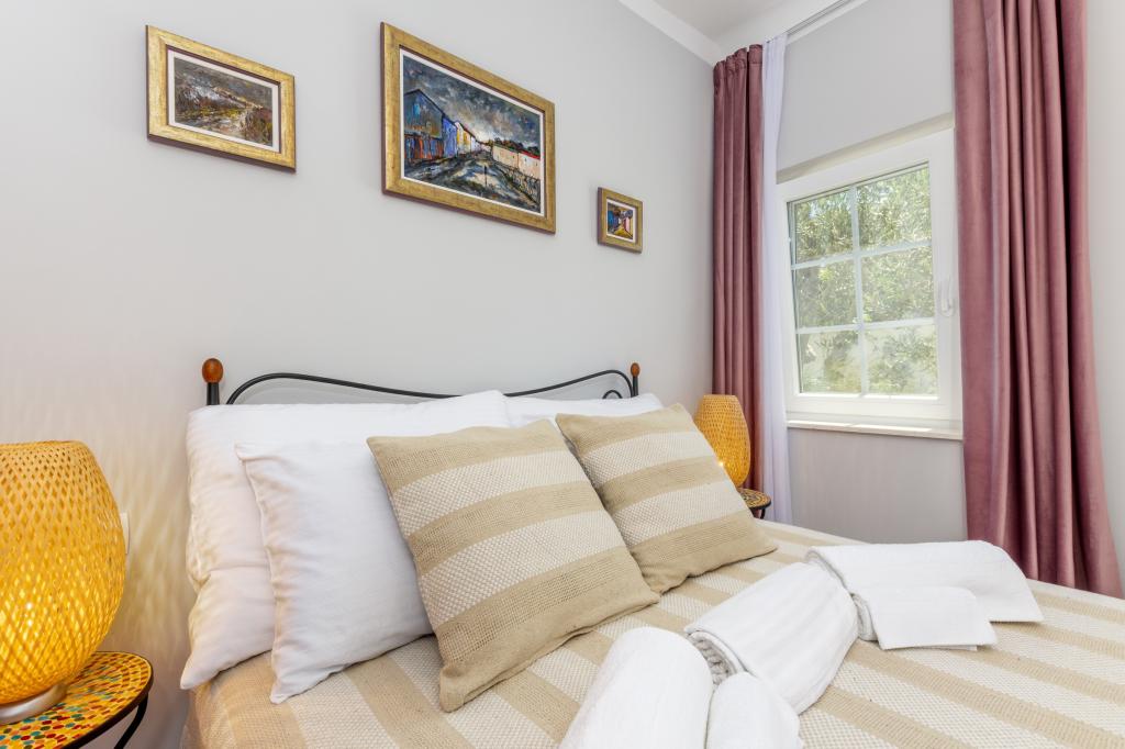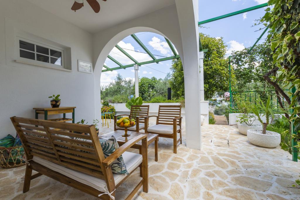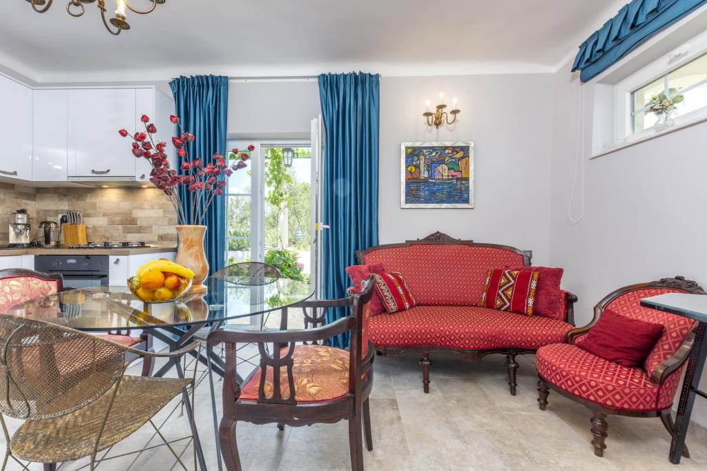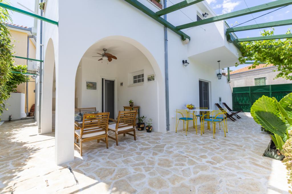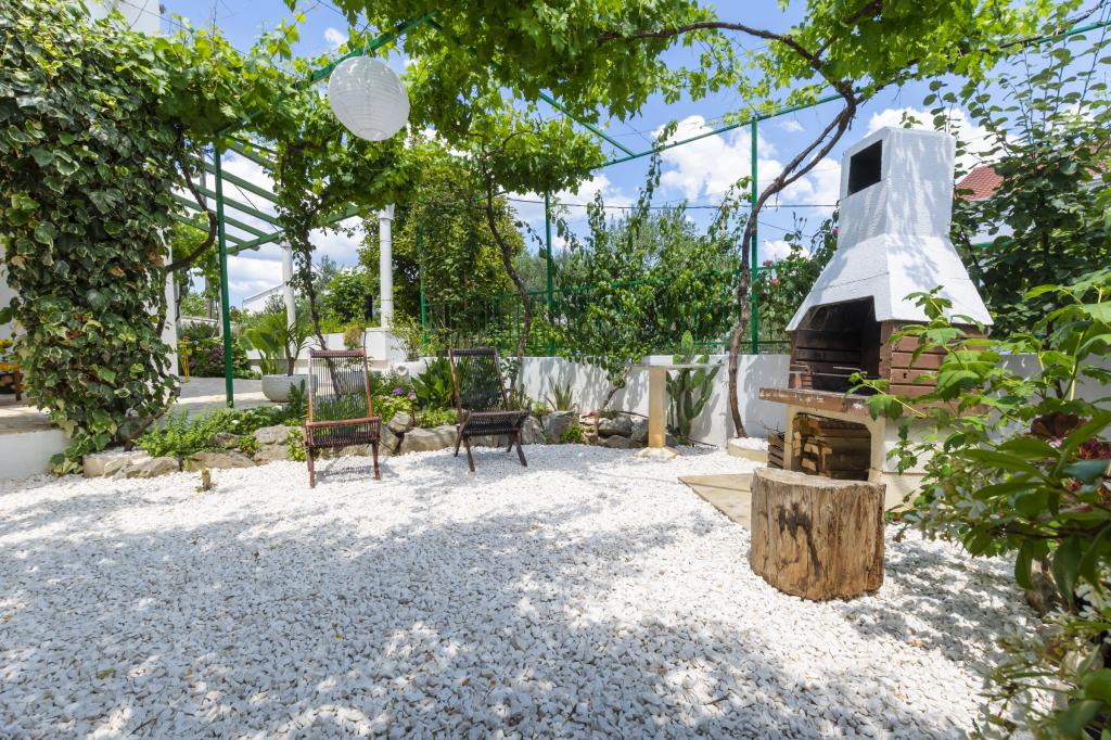 Ekskluzywny nowo wyremontowany apartament w małej wiosce rybackiej Arbanija (wyspa Ciovo) w pobliżu Trogiru. Mieszkanie ma prywatny dostęp przez ogrodzony ogród (gaj oliwny) o powierzchni 700 m2, taras o powierzchni 120m², 100 m od morza i plaży żwirowej. Wnętrze mieszkania ma łącznie 43 m2 2 sypialnie (8 m2 jedna sypialnia i 9 m2 druga) oraz 2 łazienki. Mieszkanie posiada duży ogród i prywatny parking i jest otoczone wysokim kamiennym murem, a dostęp do mieszkania zapewniają żelazne drzwi z zamkiem. Ogród jest ukryty z zewnątrz i zapewnia pełną prywatność. Do dyspozycji Gości jest bezpłatny bezprzewodowy dostęp do Internetu oraz grill i prysznic słoneczny w ogrodzie. Mieszkanie po kapitalnym remoncie w styczniu 2021, wyposażone w nową kuchnię, sprzęt AGD i meble łazienkowe. Odrestaurowane meble i obrazy artystyczne nadają temu mieszkaniu elegancji i ciepła.