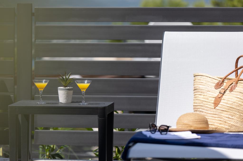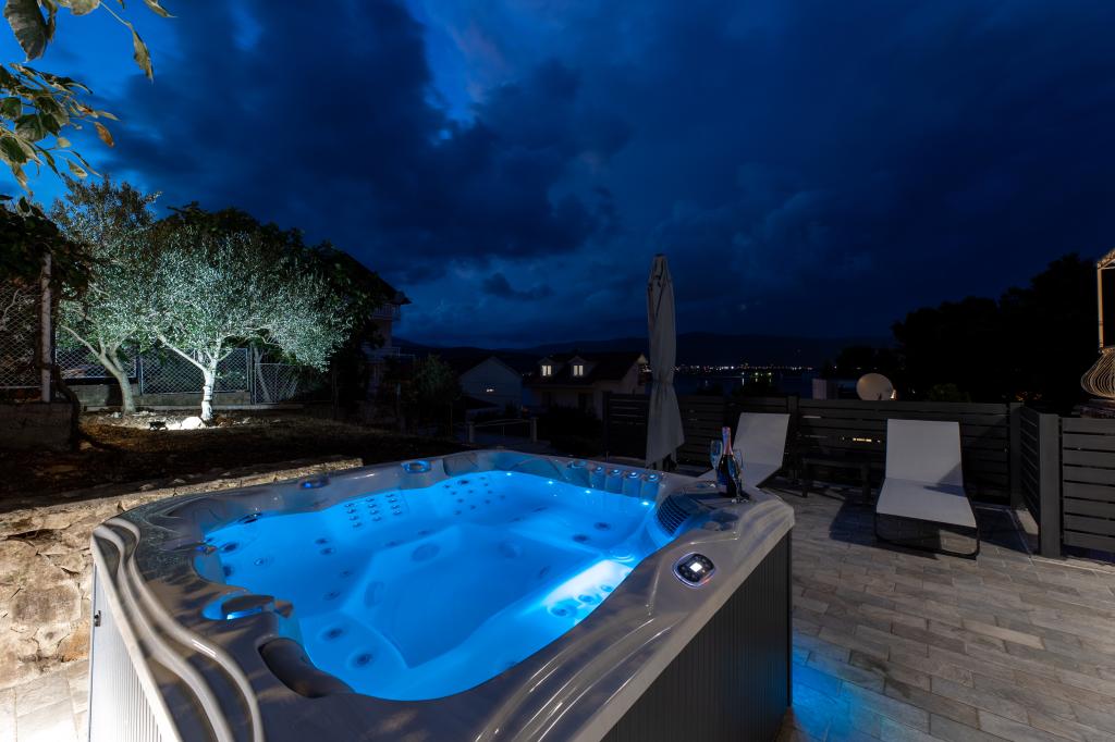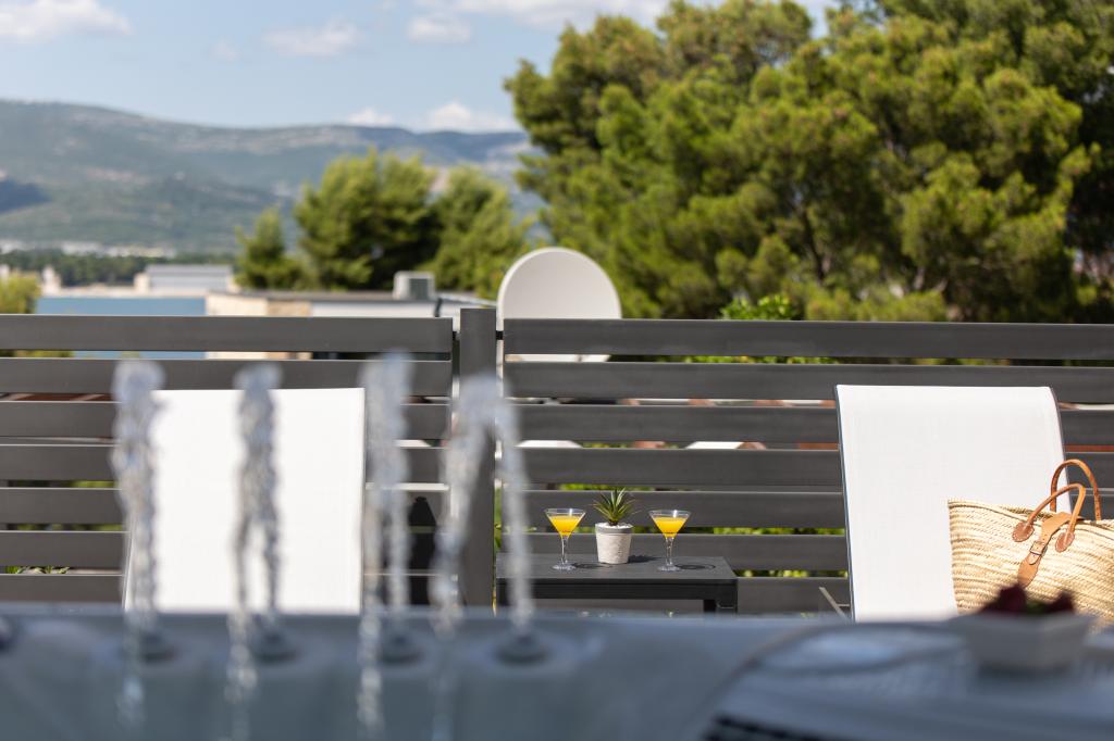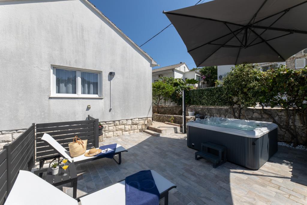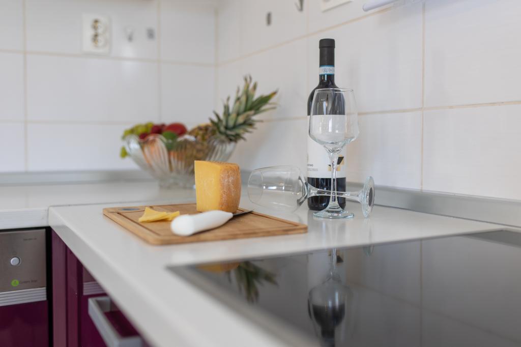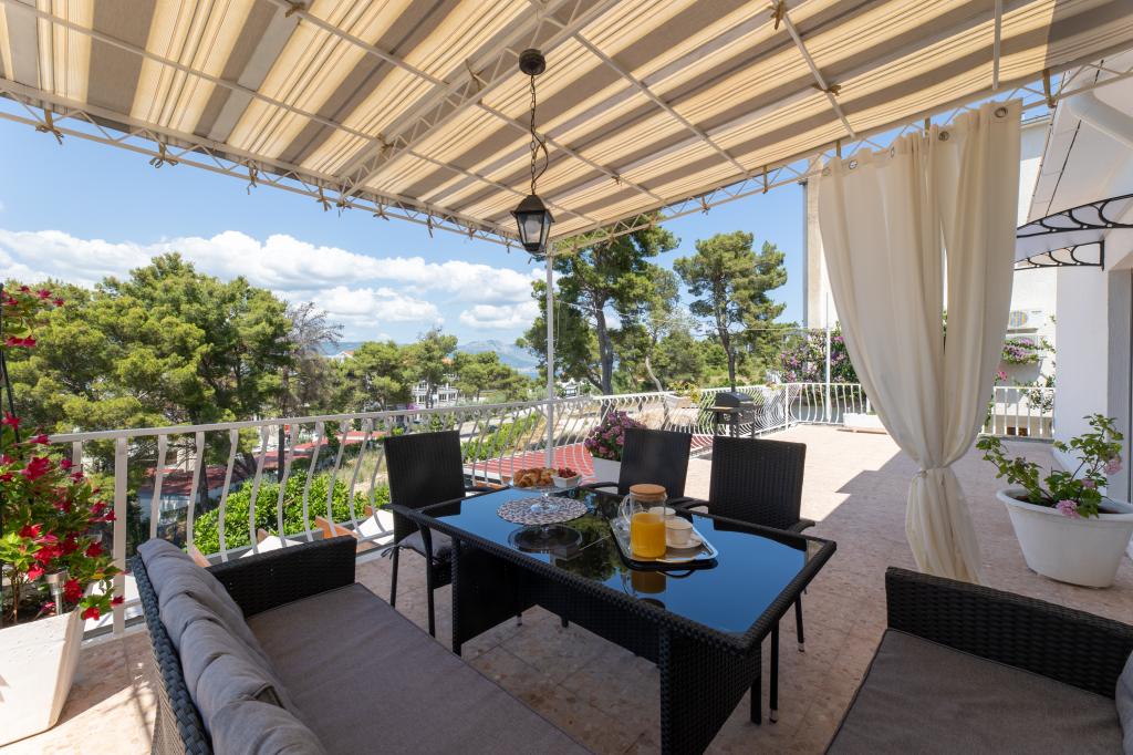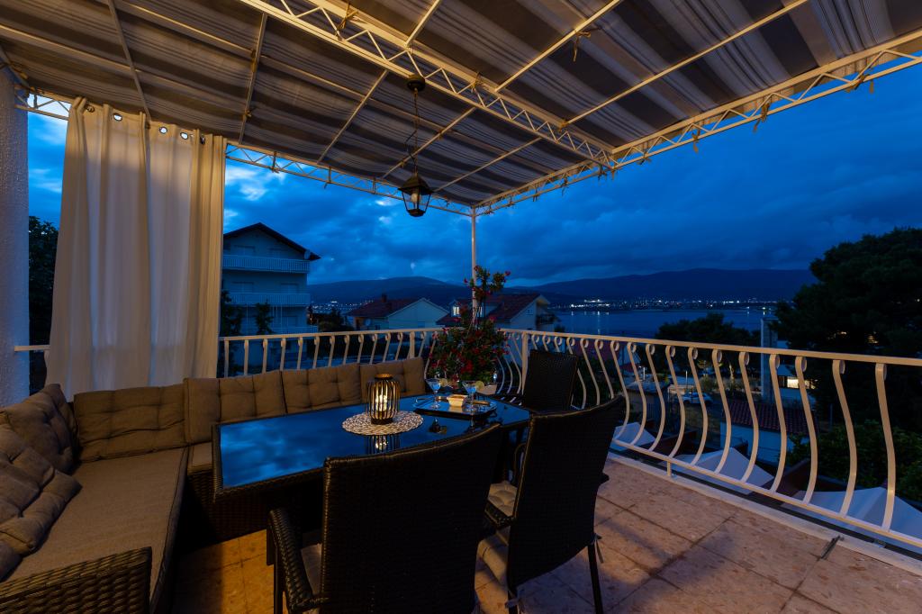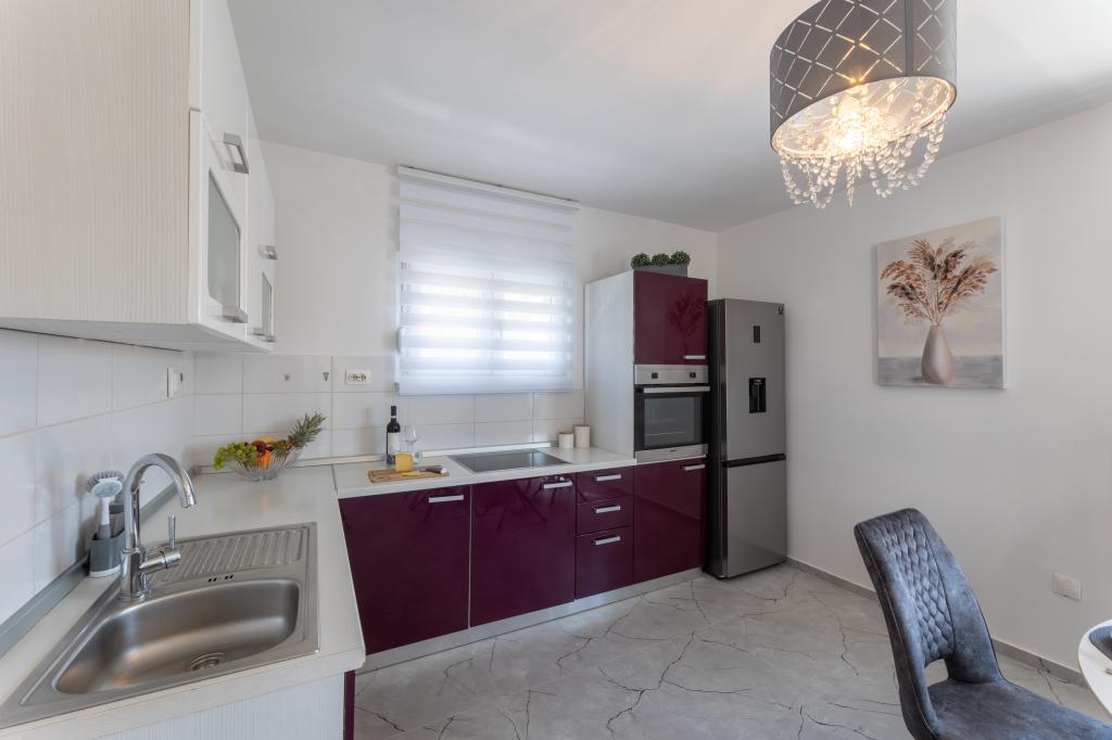 Dwupokojowy apartament to idealny wybór na dłuższy pobyt nad morzem. Duża kuchnia wyposażona jest w zmywarkę, piekarnik, płytę grzejną, toster i czajnik. Z tarasu roztacza się widok na morze i góry, zapewniając tym samym wyjątkowe uczucie relaksu. Jeśli zdecydujesz się na grillowanie, goście otrzymują nowy grill z niezbędnym wyposażeniem. Przestronne pokoje wyposażone są w szafy, a ręczniki i pościel są dostępne. Na terenie apartamentu goście mają możliwość korzystania z własnego jacuzzi. Mieszkanie jest klimatyzowane i posiada zasięg WI-FI.