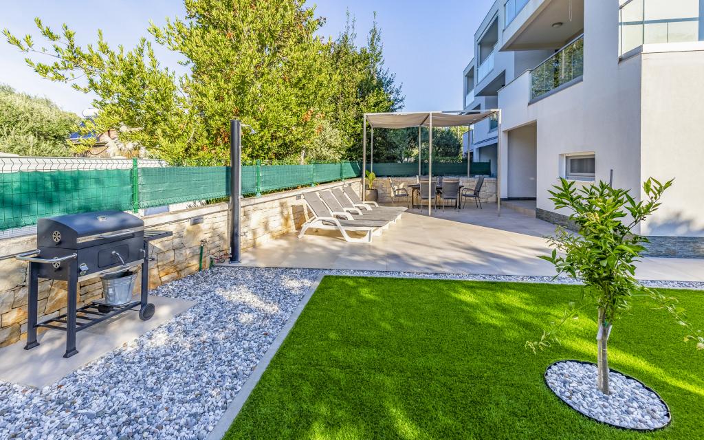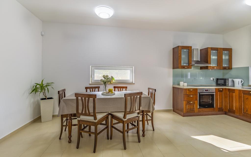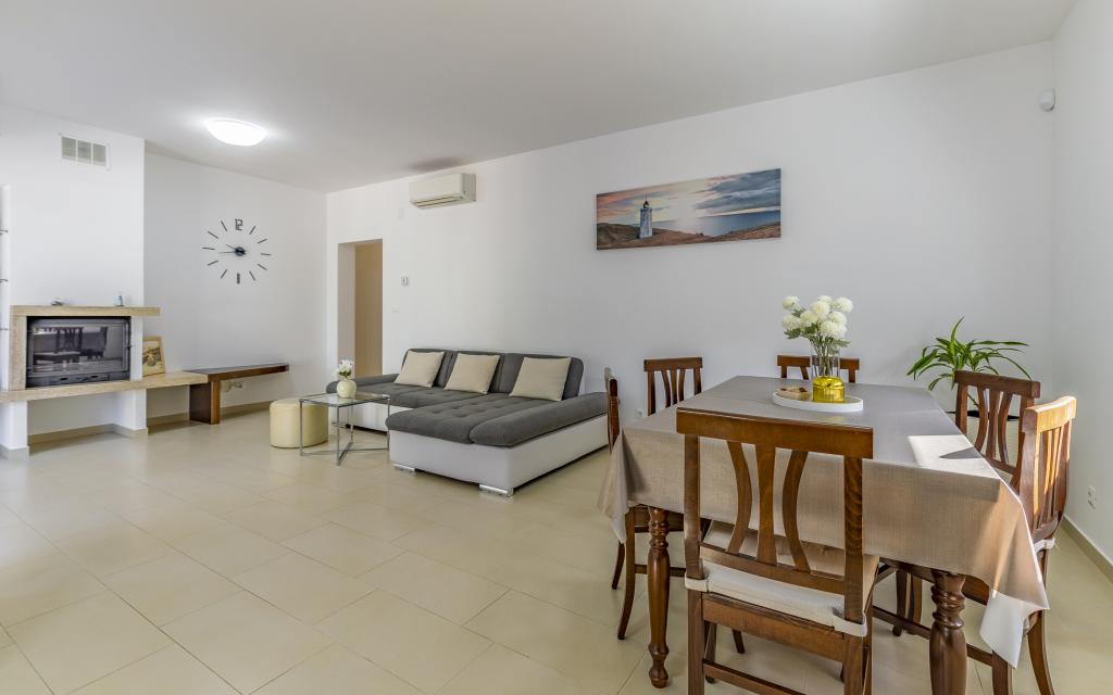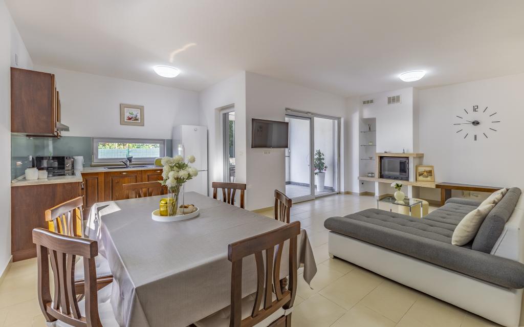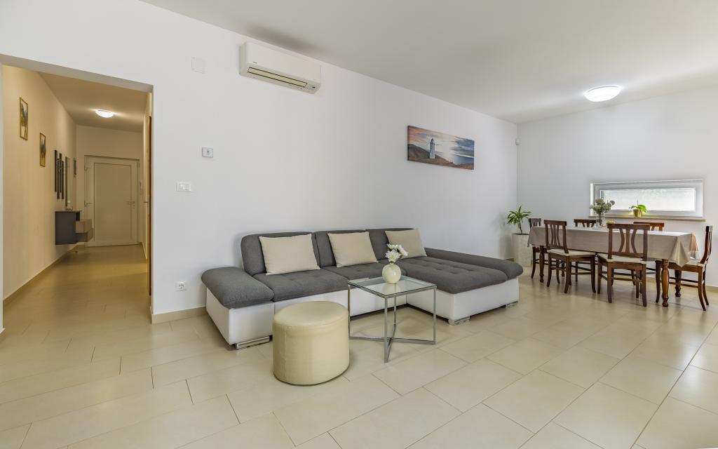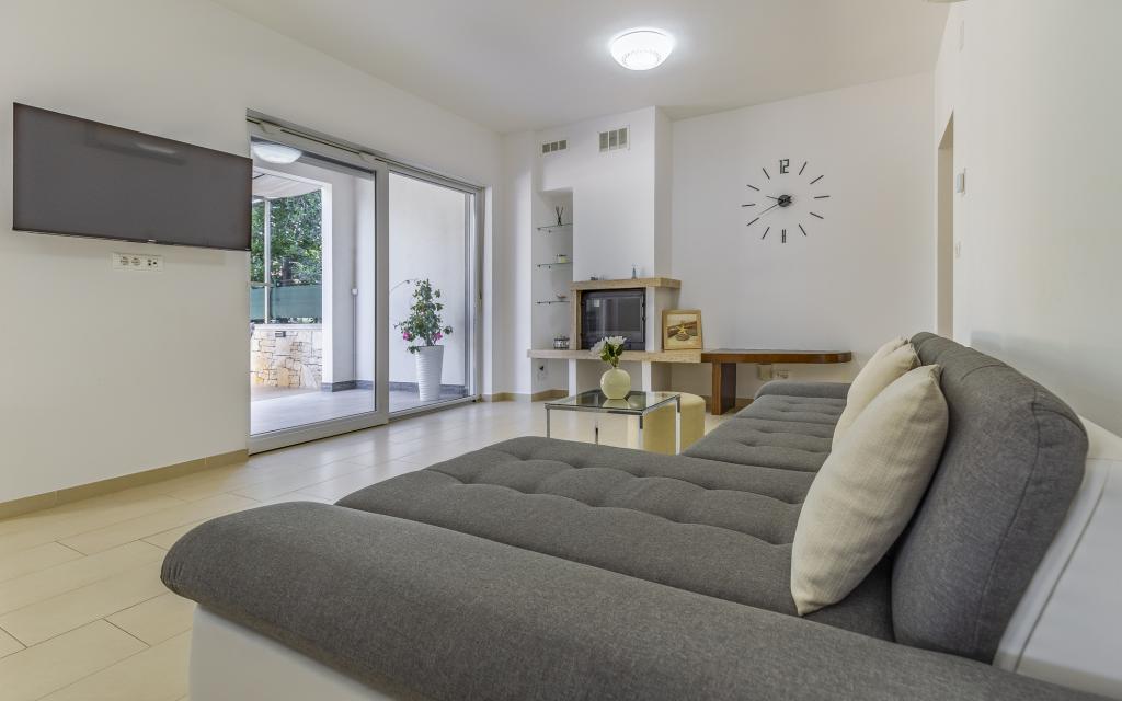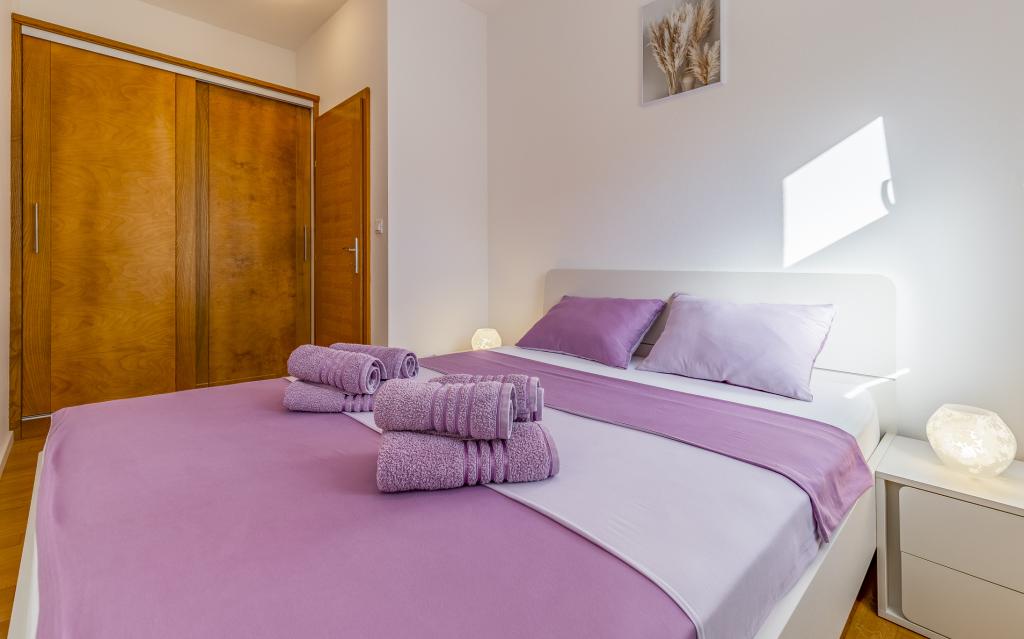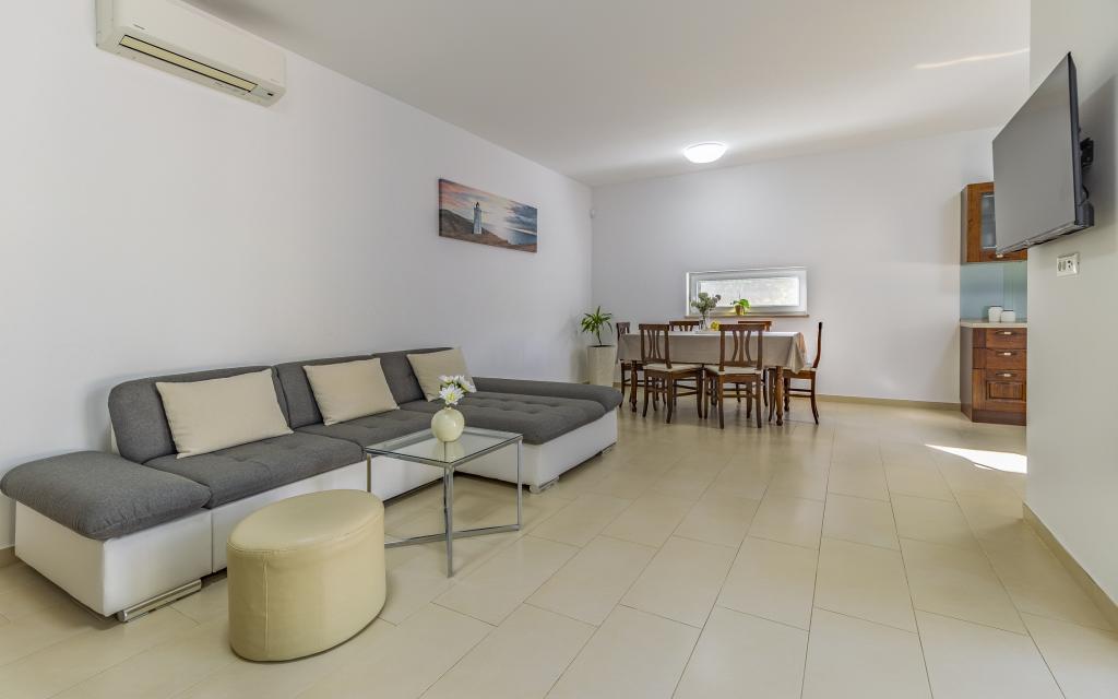 W pełni umeblowany apartament (80 m2) w doskonałej lokalizacji w spokojnej części Banjol, zaledwie 5 minut (300 m) spacerem od najpiękniejszych plaż w okolicy. Apartament znajduje się na parterze budynku mieszkalnego z zaledwie trzema apartamentami. Apartament posiada prywatny ogród (100 m2) z tarasem, stołem, leżakami, prysznicem na zewnątrz i grillem, co pozwala na przyjemne spotkania towarzyskie z dużą prywatnością i jest szczególnie odpowiednie dla rodzin z dziećmi. Obok budynku znajduje się prywatny parking z bezpośrednim dostępem do ogrodu i tarasu. Ogród został całkowicie odnowiony w 2024 roku. Cały budynek jest chroniony ogrodzeniem zabezpieczającym (dostęp na kartę). Apartament posiada 2 sypialnie z podwójnymi łóżkami, 2 łazienki z toaletą i prysznicem, przestronny salon z rozkładaną sofą, jadalnię i kuchnię. Apartament jest klimatyzowany i ogrzewany zimą (ogrzewanie podłogowe) i ma wewnętrzny kominek, dzięki czemu nadaje się również do pobytu w chłodniejszych miesiącach jesieni i zimy. W bezpośrednim sąsiedztwie apartamentu znajdują się liczne bary i restauracje, a także sklepy z artykułami dekoracyjnymi.