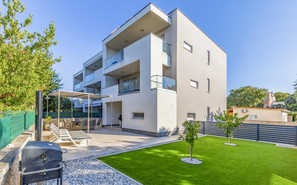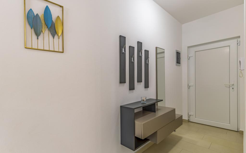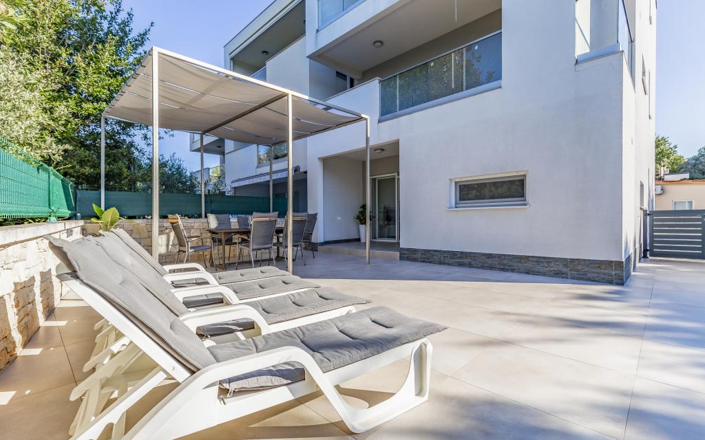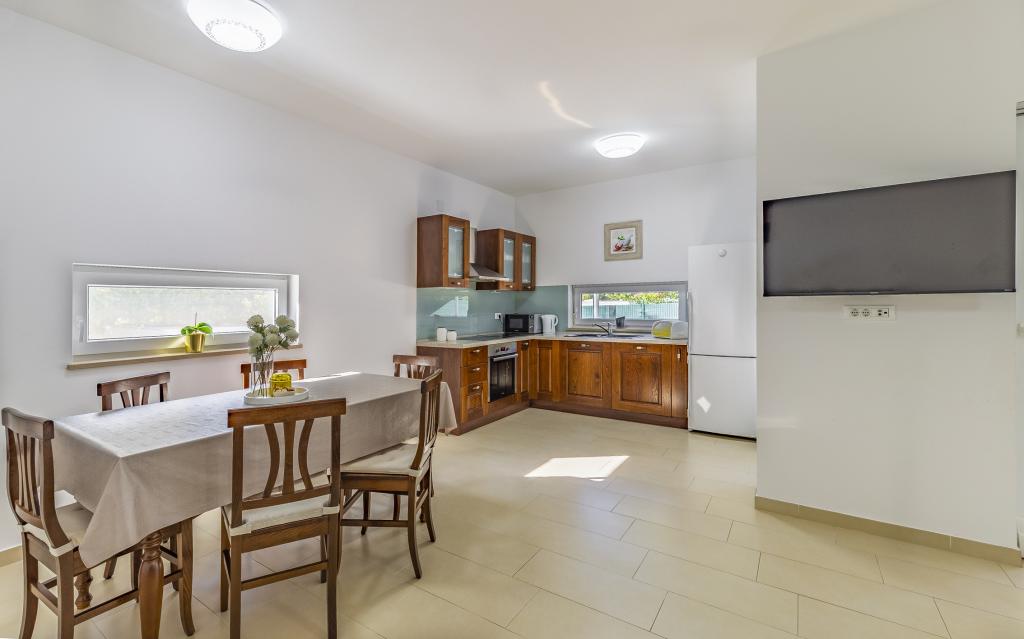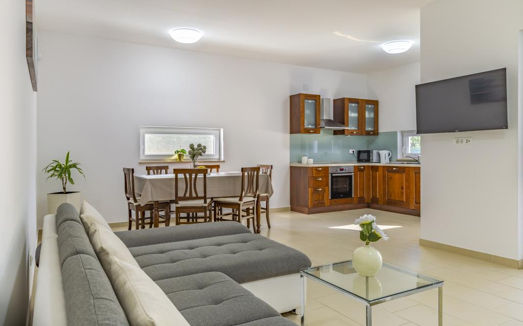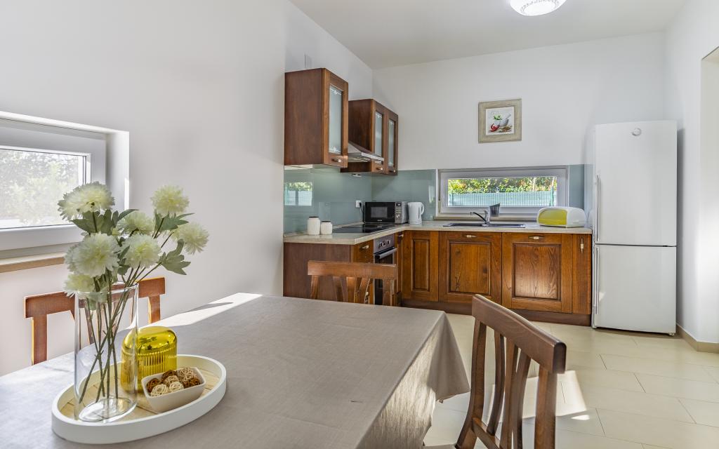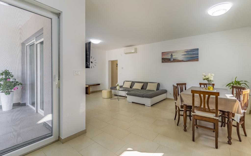 W pełni umeblowany apartament (80 m2) w doskonałej lokalizacji w spokojnej części Banjol, zaledwie 5 minut (300 m) spacerem od najpiękniejszych plaż w okolicy. Apartament znajduje się na parterze budynku mieszkalnego z zaledwie trzema apartamentami. Apartament posiada prywatny ogród (100 m2) z tarasem, stołem, leżakami, prysznicem na zewnątrz i grillem, co pozwala na przyjemne spotkania towarzyskie z dużą prywatnością i jest szczególnie odpowiednie dla rodzin z dziećmi. Obok budynku znajduje się prywatny parking z bezpośrednim dostępem do ogrodu i tarasu. Ogród został całkowicie odnowiony w 2024 roku. Cały budynek jest chroniony ogrodzeniem zabezpieczającym (dostęp na kartę). Apartament posiada 2 sypialnie z podwójnymi łóżkami, 2 łazienki z toaletą i prysznicem, przestronny salon z rozkładaną sofą, jadalnię i kuchnię. Apartament jest klimatyzowany i ogrzewany zimą (ogrzewanie podłogowe) i ma wewnętrzny kominek, dzięki czemu nadaje się również do pobytu w chłodniejszych miesiącach jesieni i zimy. W bezpośrednim sąsiedztwie apartamentu znajdują się liczne bary i restauracje, a także sklepy z artykułami dekoracyjnymi.