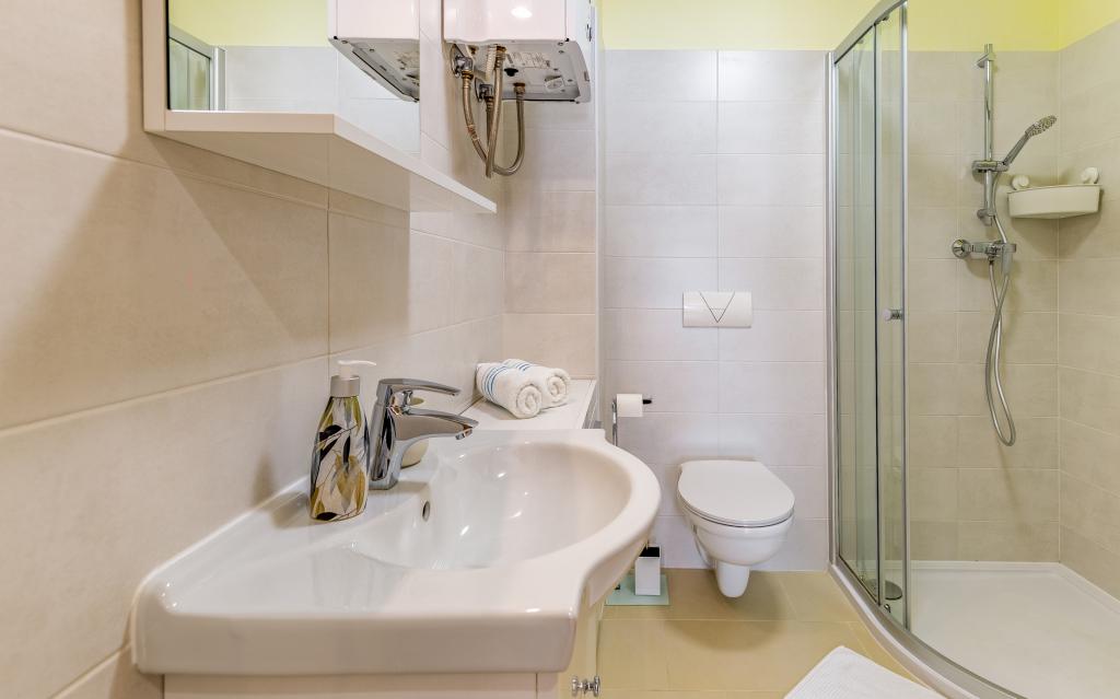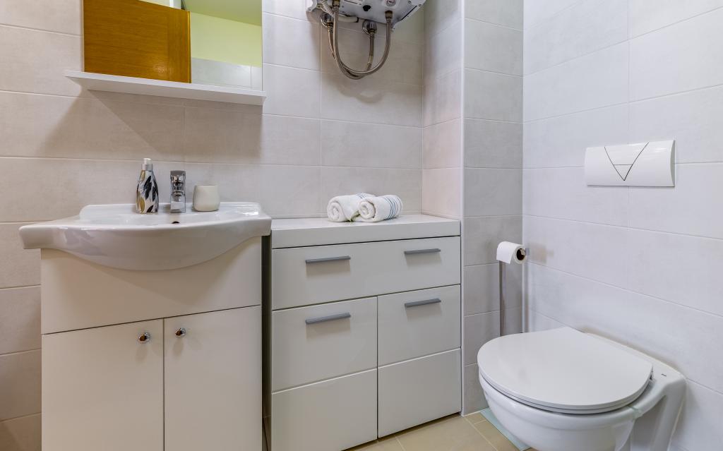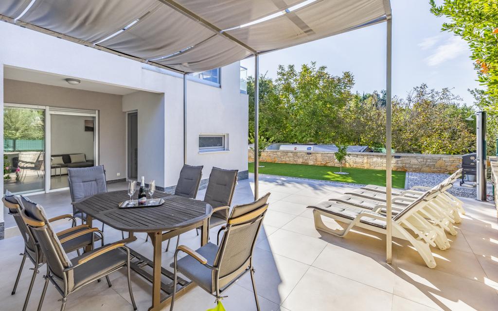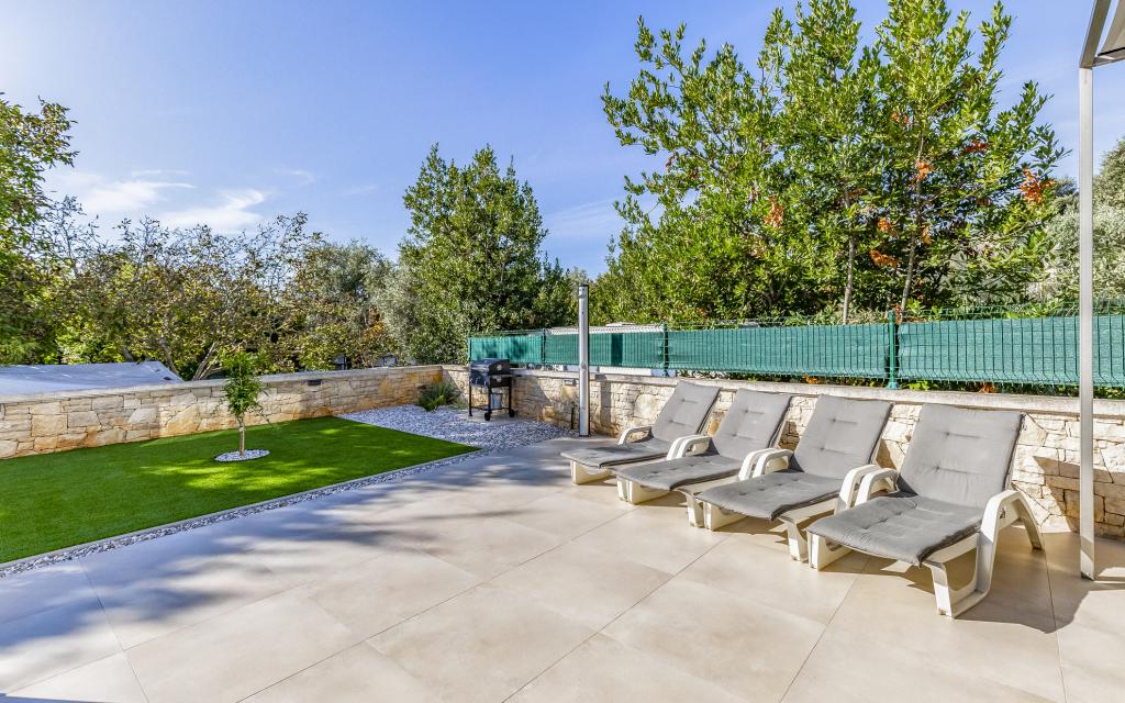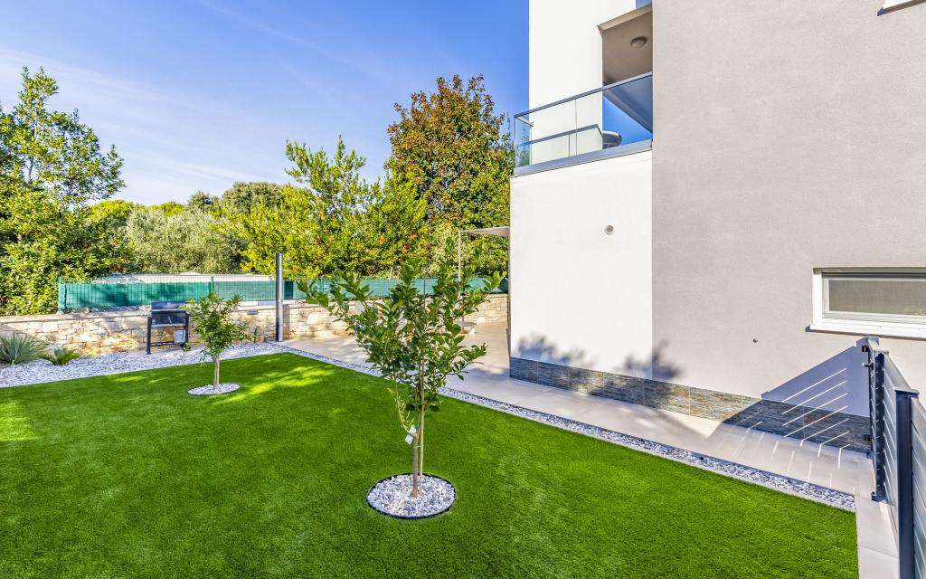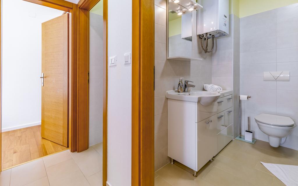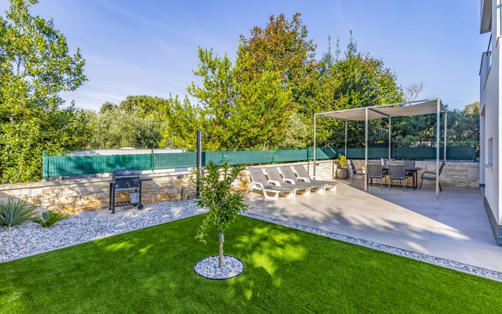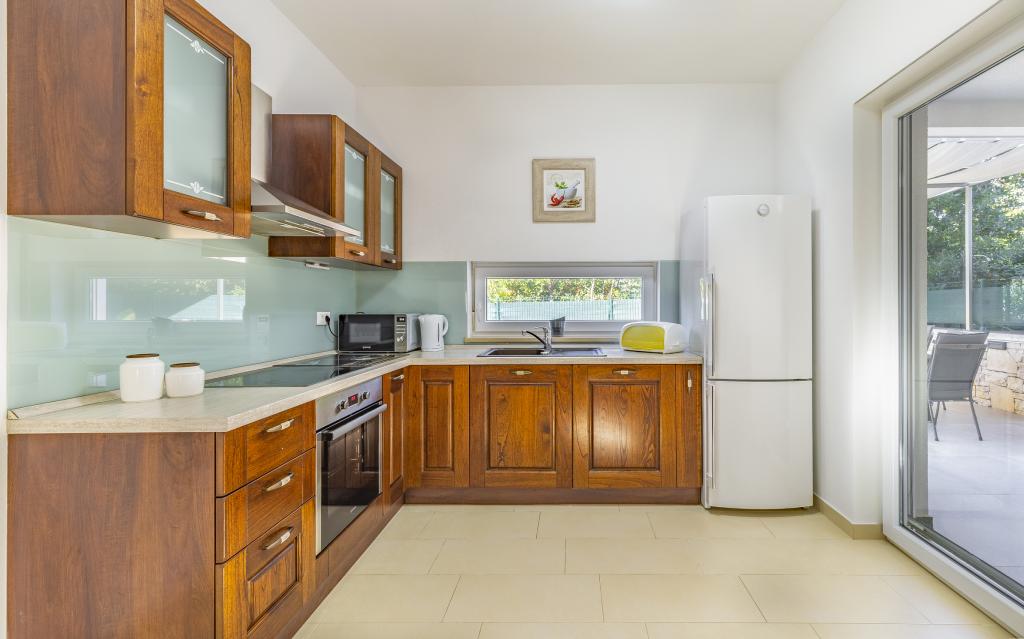 W pełni umeblowany apartament (80 m2) w doskonałej lokalizacji w spokojnej części Banjol, zaledwie 5 minut (300 m) spacerem od najpiękniejszych plaż w okolicy. Apartament znajduje się na parterze budynku mieszkalnego z zaledwie trzema apartamentami. Apartament posiada prywatny ogród (100 m2) z tarasem, stołem, leżakami, prysznicem na zewnątrz i grillem, co pozwala na przyjemne spotkania towarzyskie z dużą prywatnością i jest szczególnie odpowiednie dla rodzin z dziećmi. Obok budynku znajduje się prywatny parking z bezpośrednim dostępem do ogrodu i tarasu. Ogród został całkowicie odnowiony w 2024 roku. Cały budynek jest chroniony ogrodzeniem zabezpieczającym (dostęp na kartę). Apartament posiada 2 sypialnie z podwójnymi łóżkami, 2 łazienki z toaletą i prysznicem, przestronny salon z rozkładaną sofą, jadalnię i kuchnię. Apartament jest klimatyzowany i ogrzewany zimą (ogrzewanie podłogowe) i ma wewnętrzny kominek, dzięki czemu nadaje się również do pobytu w chłodniejszych miesiącach jesieni i zimy. W bezpośrednim sąsiedztwie apartamentu znajdują się liczne bary i restauracje, a także sklepy z artykułami dekoracyjnymi.