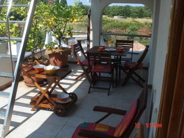 Piękne i zadbane mieszkanie, urządzone z dbałością o szczegóły. Położony w małej miejscowości niedaleko od morza Hreljići (6 km od hotelu). Mieszkanie na ostatnim piętrze domu roztacza się wspaniały widok na zielonym otoczeniu, a odległość do morza, także piękny panoramiczny widok z wiśni na tarasie z 360 stopni, z których piękne dni można zobaczyć i Wyspa Cres. Taras jest umeblowany z pięknym mebli drewnianych na zewnątrz i ozdobione drzew cytrynowych. Dostępne w domu telewizję satelitarną, DVD, wieżę stereo, klucz do Internetu. Kuchnia jest funkzionalna i nowy, posiada wszystkie udogodnienia nowoczesnej kuchni, kuchenka elektryczna, talerze na gaz i energię elektryczną, lodówkę z zamrażarką, ekspres do kawy i zmywarkę. W łazience jest toaleta, bidet, umywalka i duża wanna. W szczególności jest gość WC z umywalką. Dwa jasne pokoje, każdy z własnym balkonem i podwójnym łóżkiem. Do dyspozycji gości oraz taras pod mieszkania, gdzie jest wystarczająco dużo miejsca dla leżakami, opalania i grillowania. Pokój Dnevni i kuchnia są klimatyzowane.