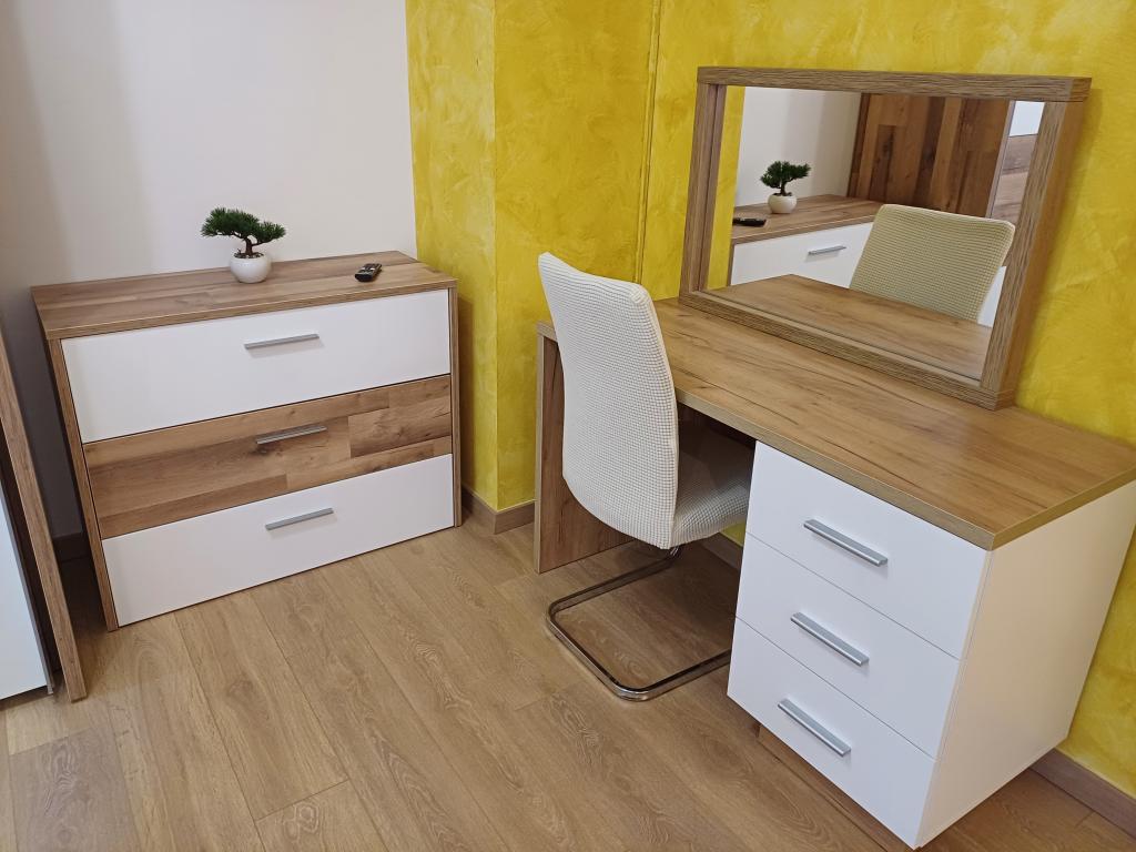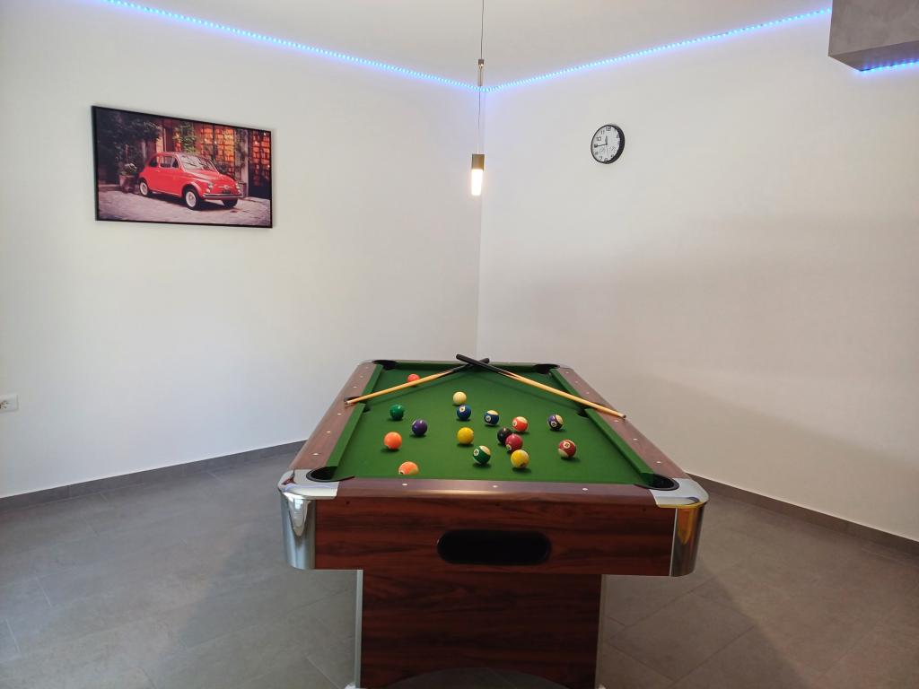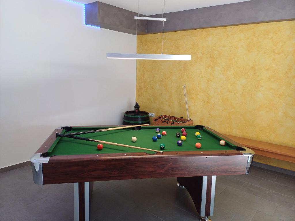 Dom jest rozłożony na dwóch piętrach. Na parterze znajduje się duży salon z rozkładaną sofą, w pełni wyposażona kuchnia oraz łazienka. Wewnętrzne schody prowadzą na pierwsze piętro, gdzie zlokalizowane są nowoczesne i komfortowe sypialnie. Klimatyzatory znajdują się w salonie i przedpokoju na 1. piętrze. W cenie wynajmu domu goście mają do dyspozycji: wi-fi, prywatny parking, dwa rowery, pościel, ręczniki, bilard, piłkarzyki oraz trampolinę.
