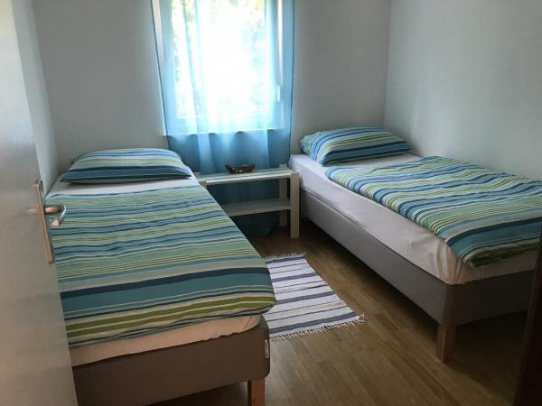 Mieszkanie jest bardzo dobrze wyposażone - dwie sypialnie, dwie łazienki, pralka i zmywarka. W kuchni wszystkie niezbędne małe urządzenia - kuchenka, toster, kuchenka mikrofalowa. Dużą zaletą grilla na podwórku. Wystarczająco dużo miejsca na kilka samochodów. Plaza znajduje się zaledwie 2 minuty spacerem od apartamentu. Cicha i piękna plaża, nigdy błotniste, czyste morze.