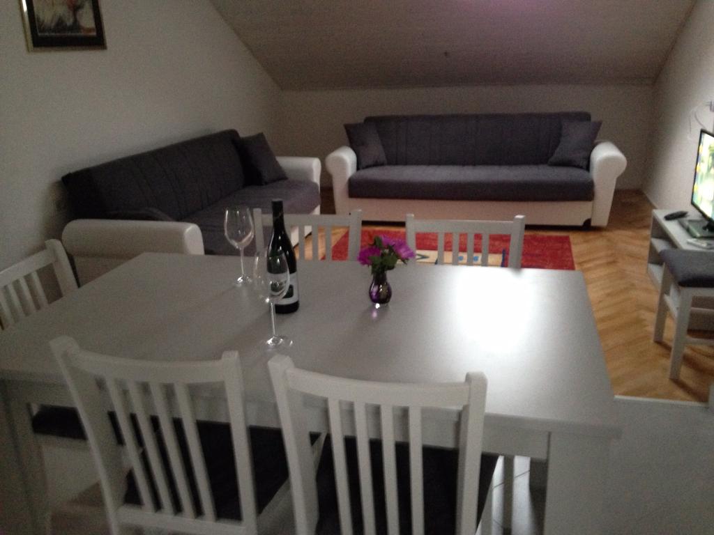 W pełni wyposażone, przestronne apartamenty z widokiem na kanał Barbat i kościół św. Damiana (pozostałości bizantyjskiej twierdzy zwiadowczej z VI wieku), z wystarczającą ilością miejsca na zewnątrz, aby różne grupy mogły cieszyć się prywatnością na przestronnym tarasie, przy basenie lub w zacienionej altanie obok domku grillowego. Dom nadaje się również na wynajem dla całej rodziny (12 osób). Dzieci i zwierzęta są mile widziane. Obiekt znajduje się niecałe 5 minut spacerem od nadmorskiej promenady z plażami, restauracjami i kawiarniami – 300 m.