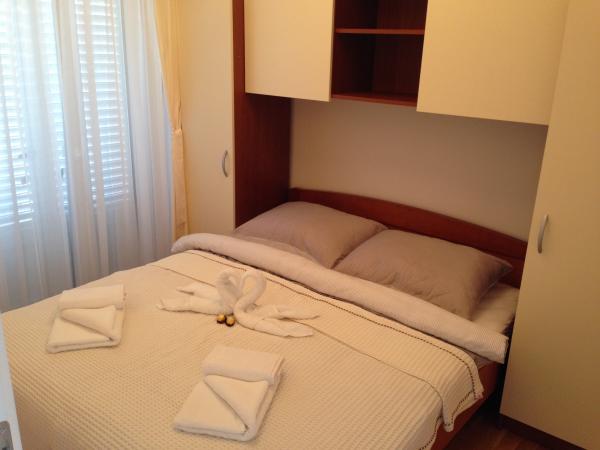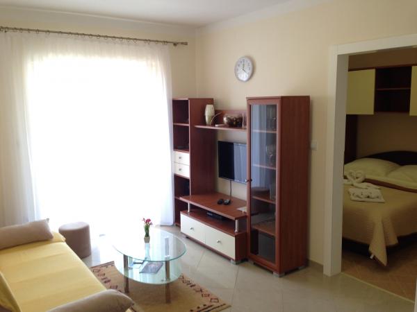 Opłata jest wliczone w cenę.Apartamenty składają się z wejścia, dwie sypialnie, pokój dzienny, kuchnia, jadalnia, łazienka i balkon. + Miejsca parkingowe. Apartamenty znajdują się w centralnej części miasta, z dala od sklepu 100m do plaży, restauracji, spacery około 400m. Odległość do centrum miasta Rab (historycznej części miasta), jest około 4 km od hotelu, gdzie istnieją regularne linie autobusowe, taksówki i taksówki łodzi i można chodzić i nowa promenada wzdłuż wybrzeża. Cena zawiera: opłata klimatyczna, internet - (przez Wi-Fi), telefon - (w sytuacjach awaryjnych), kuchnia - (w pełni wyposażona), klimatyzacja (chłodzenie / ogrzewanie) TV-radio (maks. usługi TV z ponad 200 kanałów premium), sejf, pościel, ręczniki, mydło, media, sprzątanie, itp.