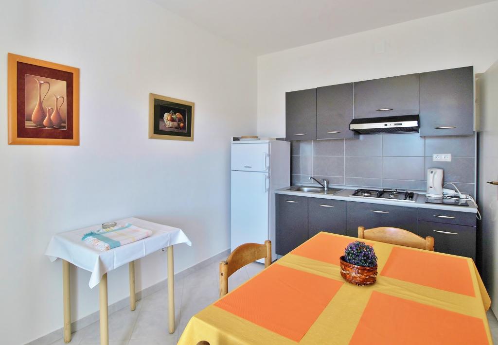 Drodzy Goście! Oferujemy apartamenty dla 4 osób. Każdy apartament składa się z dwóch dwuosobowych sypialni, kuchni z jadalnią, a także każdy pokój ma własną łazienkę lub prysznic / toaletę. Wszystkie apartamenty posiadają balkon / taras z widokiem na morze, telewizję satelitarną i klimatyzację. Pościel i ręczniki, a także wszystko inne potrzebne do przyjemnego wypoczynku znajdują się w apartamentach i nie ma potrzeby zabierania ze sobą niczego na wakacje. Pościel zmieniana jest raz w tygodniu, a ręczniki według życzenia. Na zewnątrz mamy duży taras i jadalnię oraz duży grill/grill na podwórku, z którego można korzystać według uznania. Istnieje również możliwość skorzystania z pralki.