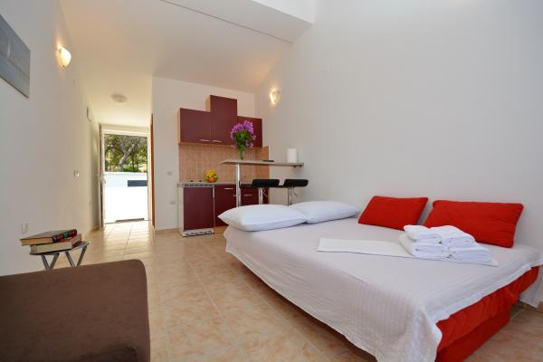 Apartamentowiec położony jest w spokojnej zatoce Basina na wyspie Hvar, w odległości 50 metrów od morza z 2 mieszkań, parking. Studio (2 1) - 25 m2, oddzielne wejście, podłoga, balkon 4m2, pokój dzienny z kuchnią i WC. Apartament (4 2) - 50 m2, oddzielne wejście, parter, taras 30 m2, BC, pokój dzienny z kuchnią, 2 sypialni i WC. Bay Basin znajduje się 6km od Vrboska (2 km pieszo) i 9 km od Starego Miasta. Basin można dotrzeć promem od Splitu do Stari Grad, lub z Drvenik do Sucuraj. Domy w Zatoce położone są wzdłuż wybrzeża i środowiska jest zielone i las sosnowy. Brak większych kwaterach i przeludnienie plaże off. Doskonale nadaje się na spokojny wypoczynek. Dlaczego Basina? W połowie drogi od Stari Grad do Jelsa, w północnej części wyspy, znajduje się w pięknej zatoce, Stari Grad. Otoczony sosnami, których baldachim śpiewać z bryzą, co najcieplejsze letnie dni komfortowy pobyt na pięknych plażach, w odpowiednie miejsce do odpoczynku i relaksu.