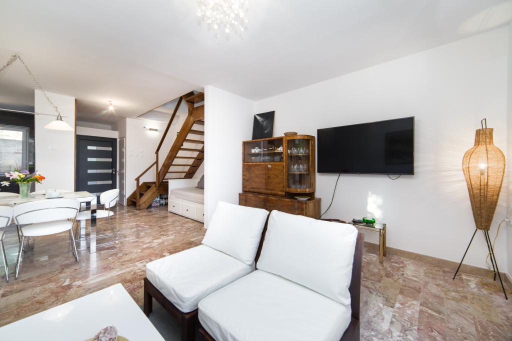 Apartament Bella to dwupoziomowy w pełni i nowocześnie wyposażony apartament w oddzielnej części domu z widokiem na morze. Ten klimatyzowany apartament z dużym tarasem o powierzchni 130 m2 i balkonem oferuje bezpłatny parking na miejscu i WiFi, 3 sypialnie, kuchnię ze zmywarką, kuchenką mikrofalową, ekspresem do kawy i czajnikiem, salon oraz jadalnię z telewizor z płaskim ekranem, 2 łazienki. W odległości 400 m znajduje się centrum miasta, dwie plaże, restauracje, bary, sklepy, apteka, promenada nad morzem, wszystko co umili Państwu pobyt. Możesz uzupełnić swój wolny czas dużym wyborem wycieczek łodzią na wyspy Hvar, Brac i Korcula i cieszyć się urokami góry Biokovo, kanionu rzeki Cetina, Makarskiej, Splitu, Dubrownika i słynnego sanktuarium Medziugorje, a także licznych sporty morskie. Drodzy goście mile widziani. Życzę miłego wypoczynku i jestem do Państwa dyspozycji podczas pobytu w apartamencie Bella.