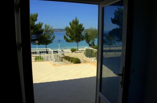 Baska Voda, Chorwacja - Podluka 13 - Apartament rodzinny \ Miro \. Dom znajduje się w odległości 5 metrów od plaży. Ma piękny ogród z prysznicem i grill, duży taras do opalania oraz garażu! Na tarasie można cieszyć się magiczny widok na Adriatyk i cieszyć się orzeźwiającą morską bryzę. Jednakże, jeśli gorących letnich nocy, zawsze jest piękna plaża, zaledwie kilka kroków! Dom przeznaczony jest wyłącznie dla gości!