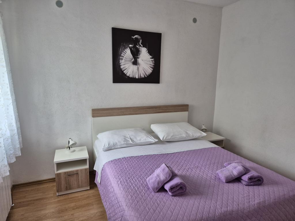 Całkowicie i nowocześnie wyposażone apartamenty w spokojnej okolicy w miejscowości Baska Voda, parking i pełna oferta wszystkiego, czego potrzebujesz na przyjemne i beztroskie wakacje (klimatyzacja, telewizor, internet, pralka, grill, ...) w przyjemnej atmosferze domowników. Blisko morza (200m) i obiektów rozrywkowych oraz wielu plaż. PARKOWANIE PRYWATNE jest dostępne na stronie. BEZPRZEWODOWY DOSTĘP DO INTERNETU jest dostępny w całym obiekcie i jest bezpłatny. Popularny dla rodzin z dziećmi (przestronny ogród i ogród, cicha lokalizacja). APARTAMENT A: 2 przestronne sypialnie z balkonem (2 łóżka podwójne i 1 łóżko pojedyncze) salon z 1 rozkładaną sofą, 3 łazienki, kuchnia ze zmywarką, jadalnia, widok na morze. APARTAMENT B: 2 sypialnie (2 podwójne łóżka), 2 łazienki, 2 balkony. APARTAMENT C: 1 sypialnia (1 duże łóżko podwójne), rozkładana sofa w jadalni, balkon. APARTAMENT D: 2 sypialnie (2 podwójne łóżka), 1 łazienka, balkon z widokiem na morze.
