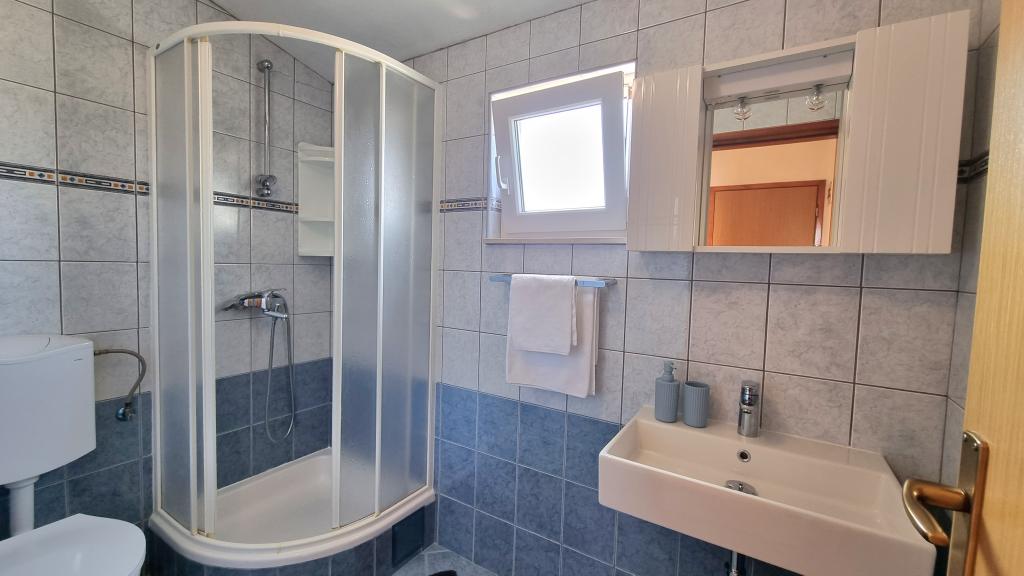 Spędziliśmy w tym zakwaterowaniu 10 dni. Mogę powiedzieć, że gospodyni to wspaniała kobieta! Miła, sympatyczna! Przywitała nas domowym brandy. Prawie codziennie dawała córce ciasteczko, tabliczkę czekolady i kawałek owocu. Zakwaterowanie jest schludne i czyste! Kuchnia jest chyba lepiej wyposażona niż moja w domu. W apartamencie znajduje się suszarka do włosów, deska do prasowania, żelazko i umywalka. Nasz samochód zaparkowaliśmy na dziedzińcu willi w cieniu. Morze jest oddalone o zaledwie 200 metrów, podobnie jak sklep. Konzum lub Tommy są równie daleko, jeśli wybierasz się na zakupy w górę lub w dół morza. Wszystkie rekomendacje. Mam nadzieję, że kiedyś znów zawitamy do Baške Vode, a jeśli tak, to na pewno znów zawitamy do Cioci Nevy.
