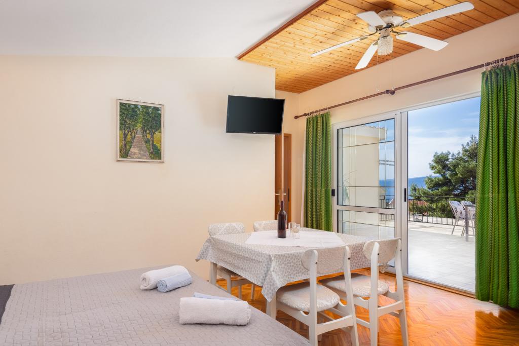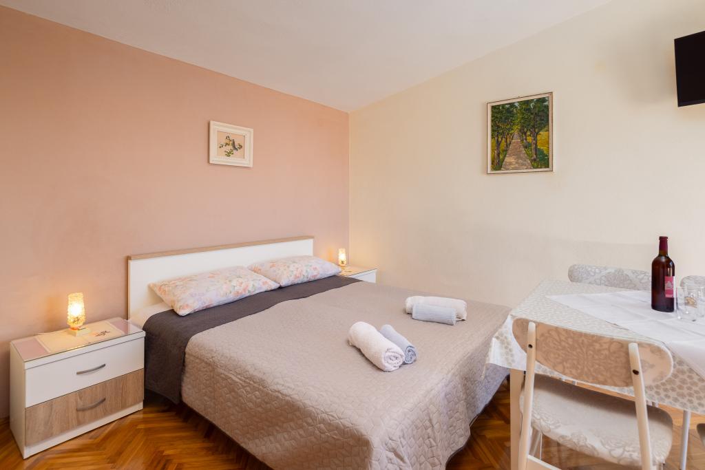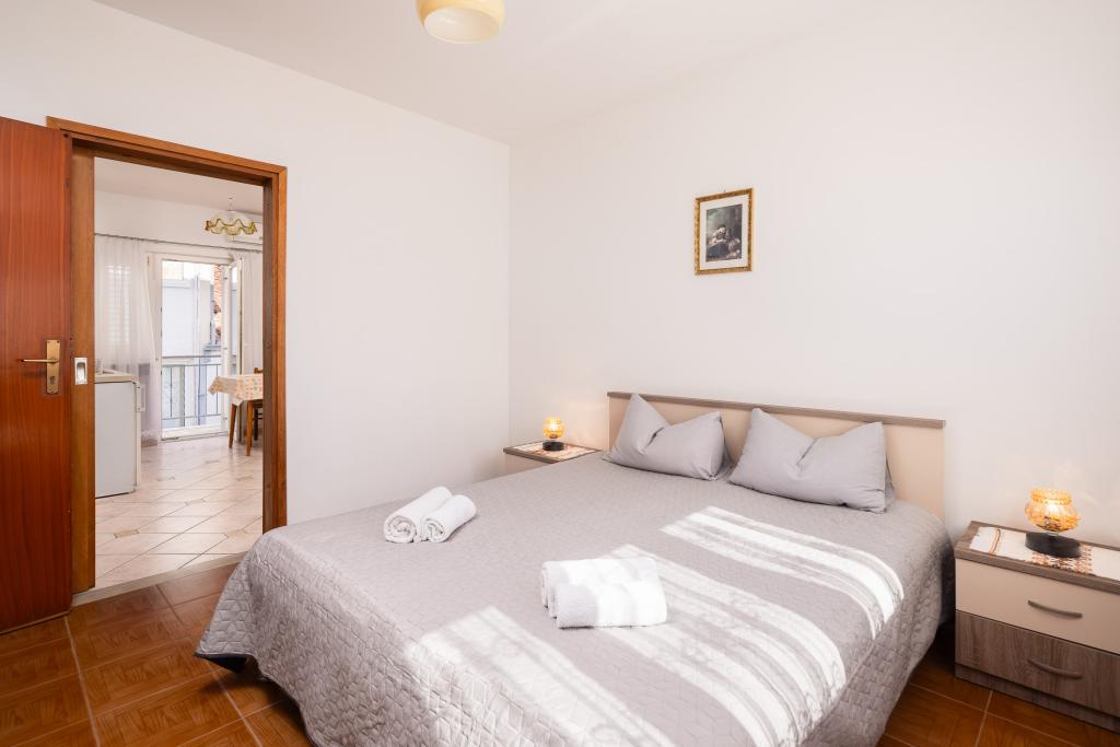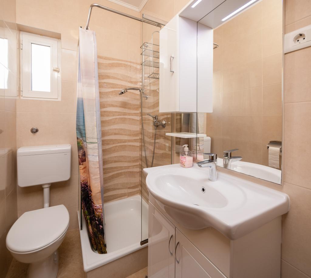 Położone w spokojnej części miejscowości Baška Voda, te apartamenty oferują komfortowe i praktyczne zakwaterowanie, zaledwie około 400 metrów od plaży. Idealny dla par, rodzin lub małych grup, obiekt obejmuje jeden przestronny apartament z dwiema sypialniami i dwiema łazienkami oraz mniejszy apartament odpowiedni dla 2 osób dorosłych i dziecka. Oba apartamenty charakteryzują się funkcjonalnym układem, wyposażonymi kuchniami, wygodnymi salonami i przestrzenią na świeżym powietrzu, w tym prywatnym balkonem i dostępem do wspólnego tarasu z grillem. Do dyspozycji gości jest również prywatny parking i spokojna okolica w pobliżu wszystkich udogodnień. Idealny wybór na relaksujący i beztroski pobyt w Baška Voda, z pomocą personelu przez cały pobyt.