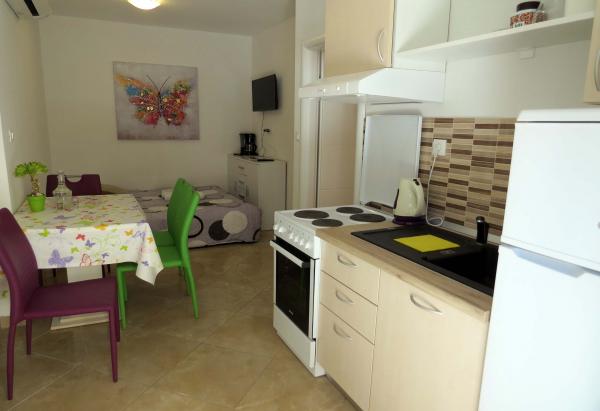 Nowoczesne apartamenty położone są w centrum miejscowości Baska Voda, blisko plaży Nikolina. W sąsiedztwie znajdują się sklepy, restauracje, bary i inne obiekty na przyjemny czas. Każdy pokój jest klimatyzowany i wyposażony w telewizor oraz balkon (A6).