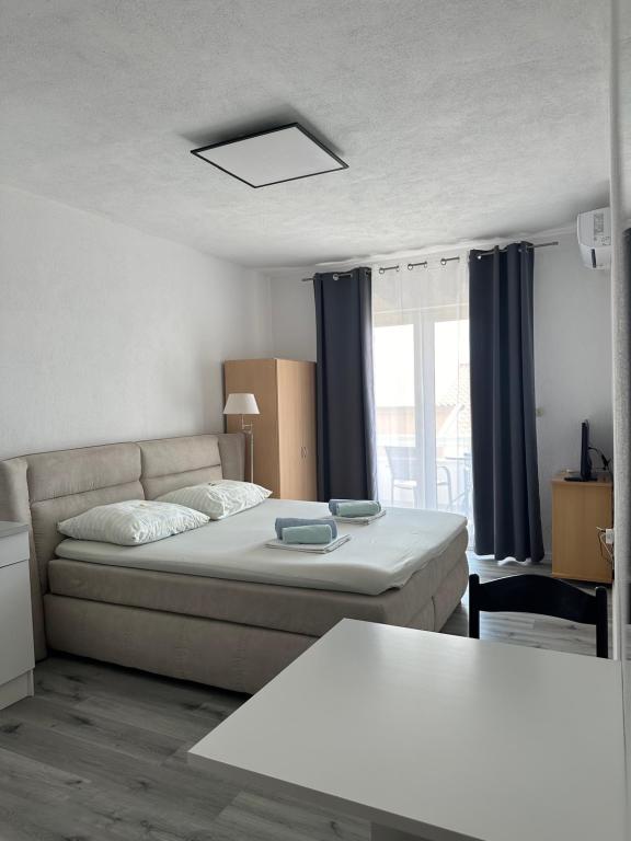 Oferujemy Państwu w pełni wyposażone apartamenty w spokojnej okolicy Baškiej Vody. Obiekt znajduje się 500 metrów od plaży i centrum, 10 minut spacerem. Oferujemy różne kombinacje zakwaterowania dla wielu osób, w tym dla grup zorganizowanych.