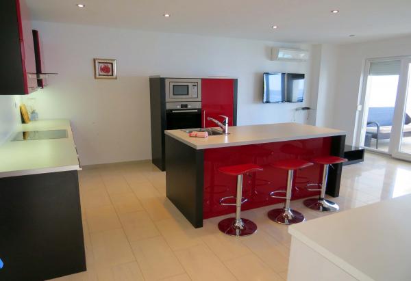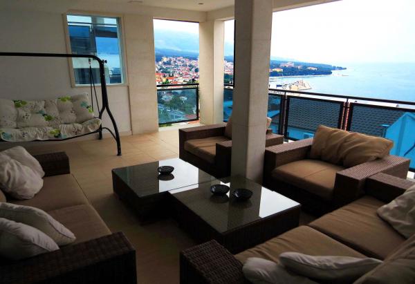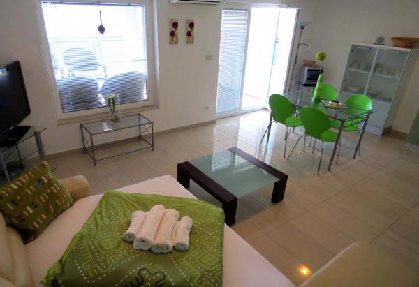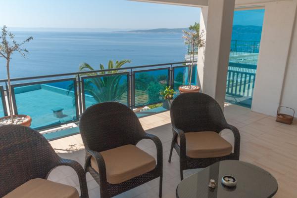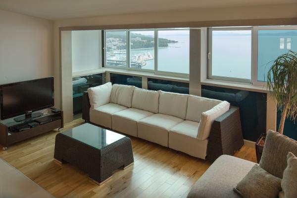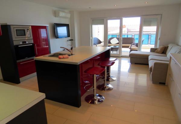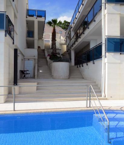 6 luksusowy i nowoczesny apartament w kompleksie z dwoma dużymi kamiennymi domami. Każdy apartament posiada widok na morze i wszystkie są nowe i nowoczesne. Kompleks znajduje się 5 minut spacerem do plaży i morza i 7 minut do centrum miasta.