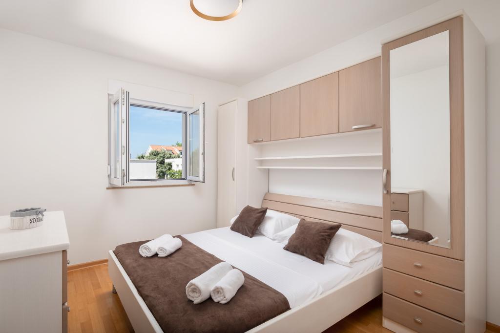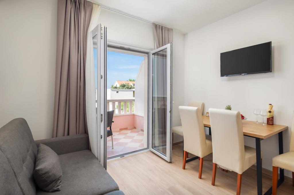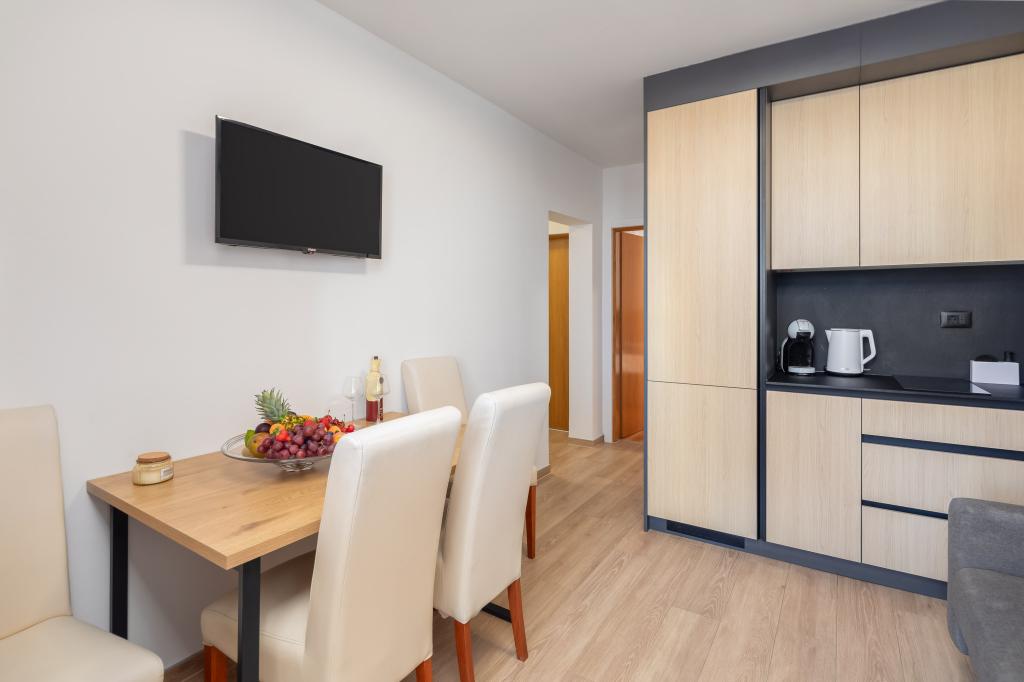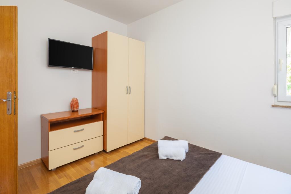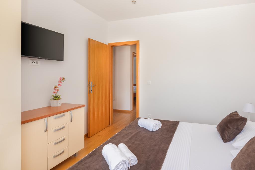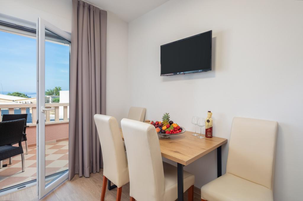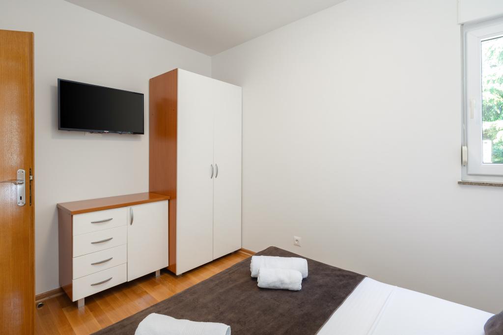 Apartamenty Teo znajdują się 150 m od plaży w Baška Voda. Składa się z apartamentu dla 4 osób, następnie apartamentu dla 6 osób i dwóch apartamentów dla 8 osób. Apartamenty wyposażone są w kuchnię, łazienkę, salon i prywatny balkon. Wspólna pralka znajduje się w garażu. Parking w budynku jest bezpłatny.