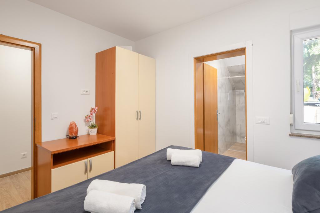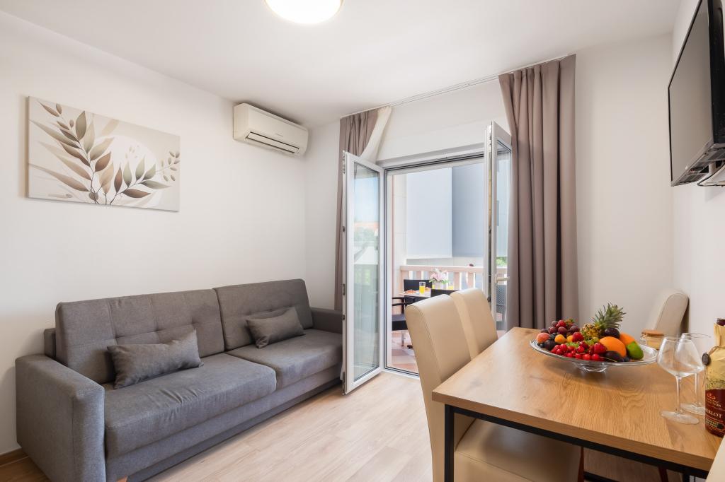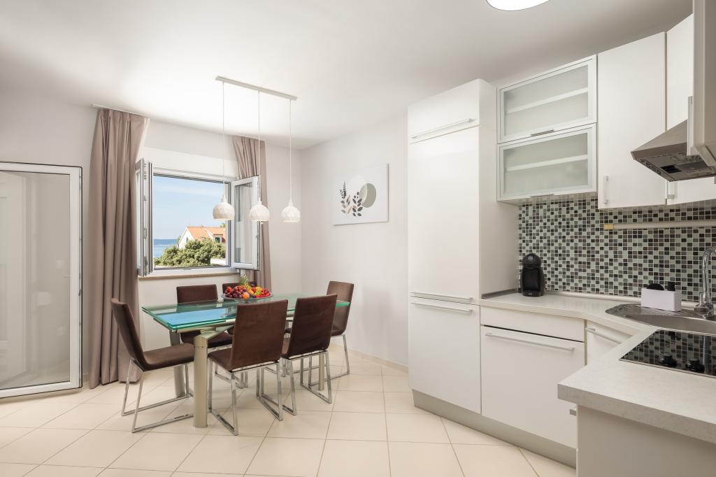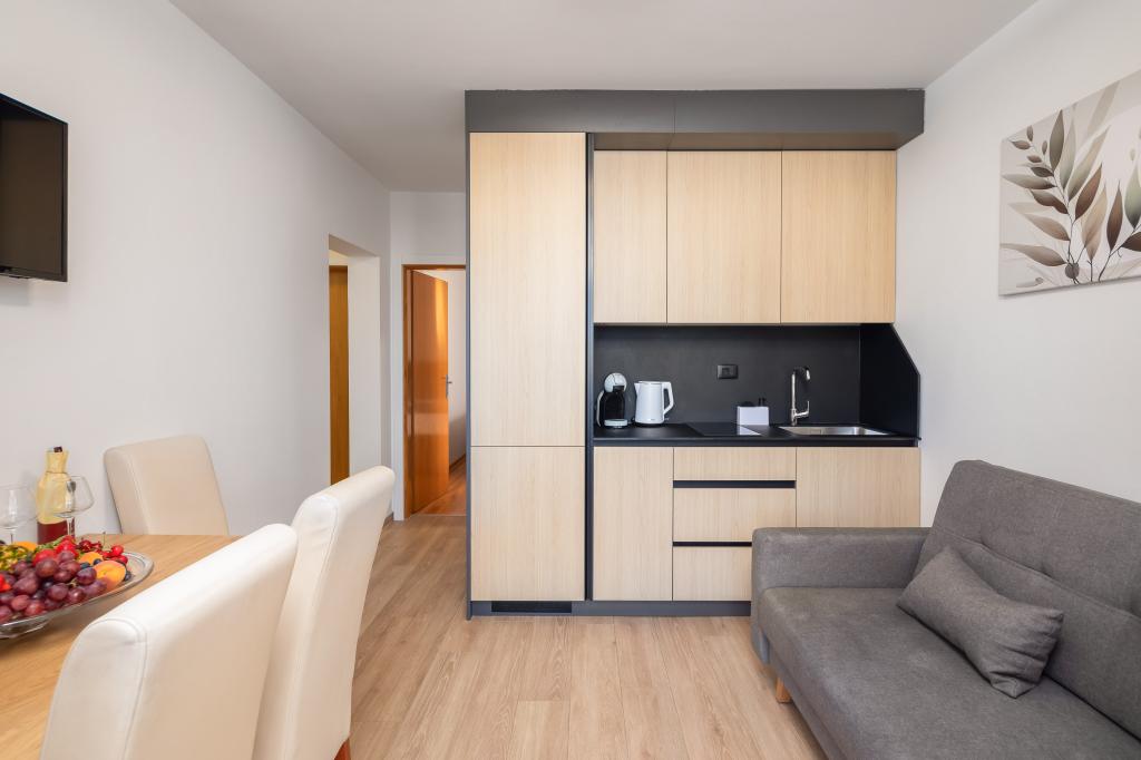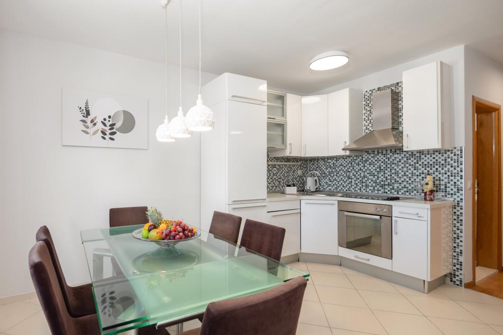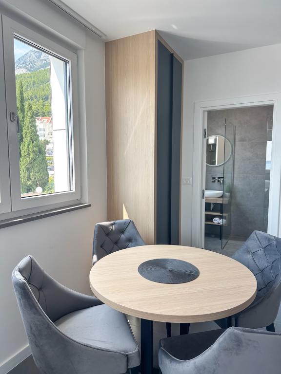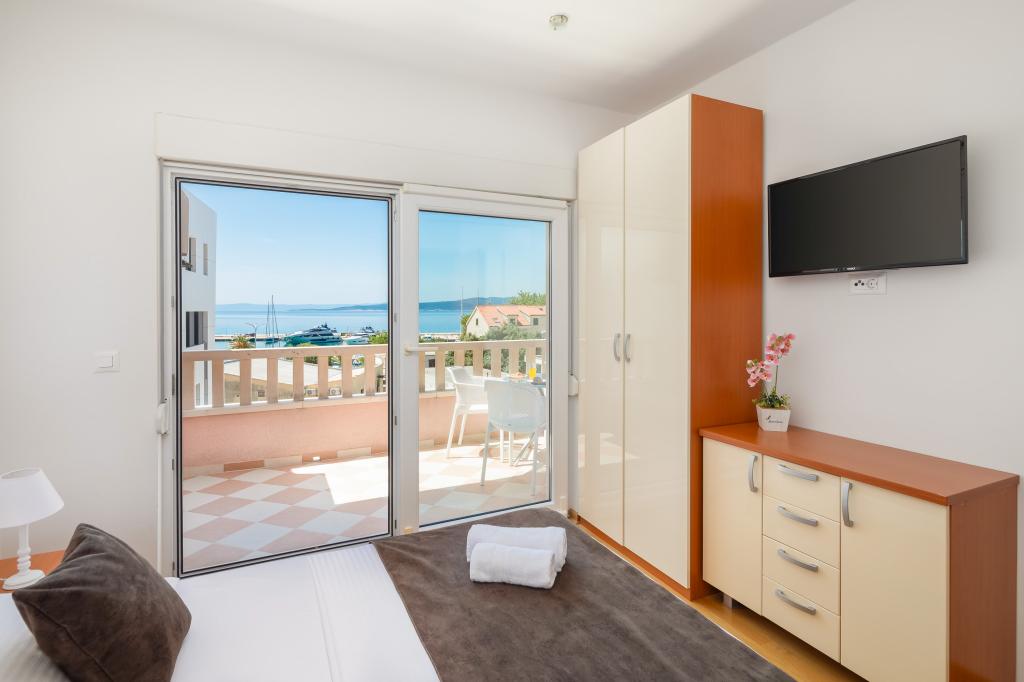 Apartamenty Teo znajdują się 150 m od plaży w Baška Voda. Składa się z apartamentu dla 4 osób, następnie apartamentu dla 6 osób i dwóch apartamentów dla 8 osób. Apartamenty wyposażone są w kuchnię, łazienkę, salon i prywatny balkon. Wspólna pralka znajduje się w garażu. Parking w budynku jest bezpłatny.