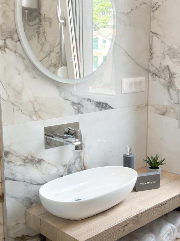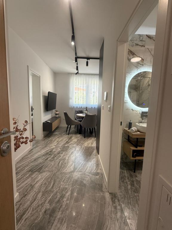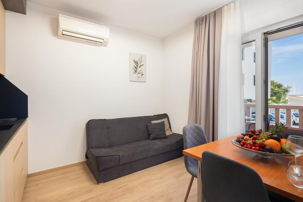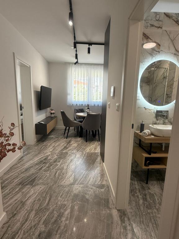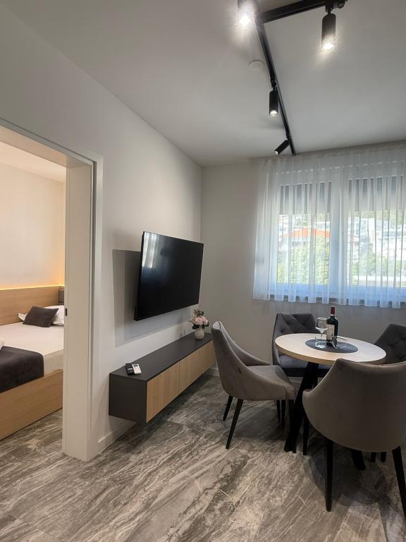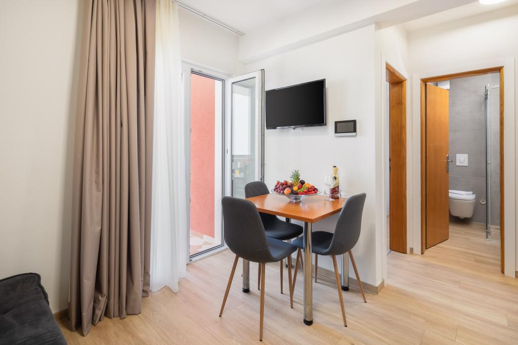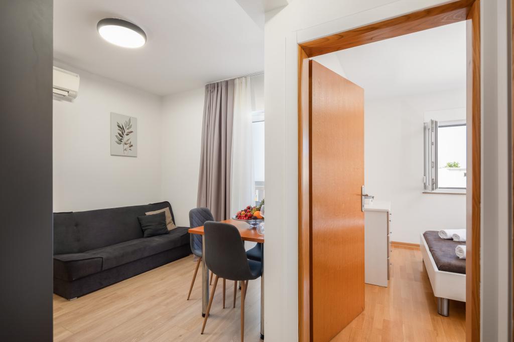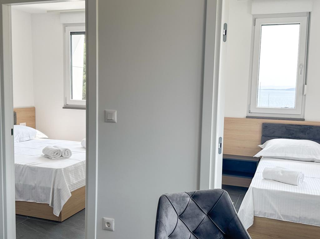Apartamenty Teo znajdują się 150 m od plaży w Baška Voda. Składa się z apartamentu dla 4 osób, następnie apartamentu dla 6 osób i dwóch apartamentów dla 8 osób. Apartamenty wyposażone są w kuchnię, łazienkę, salon i prywatny balkon. Wspólna pralka znajduje się w garażu. Parking w budynku jest bezpłatny.
