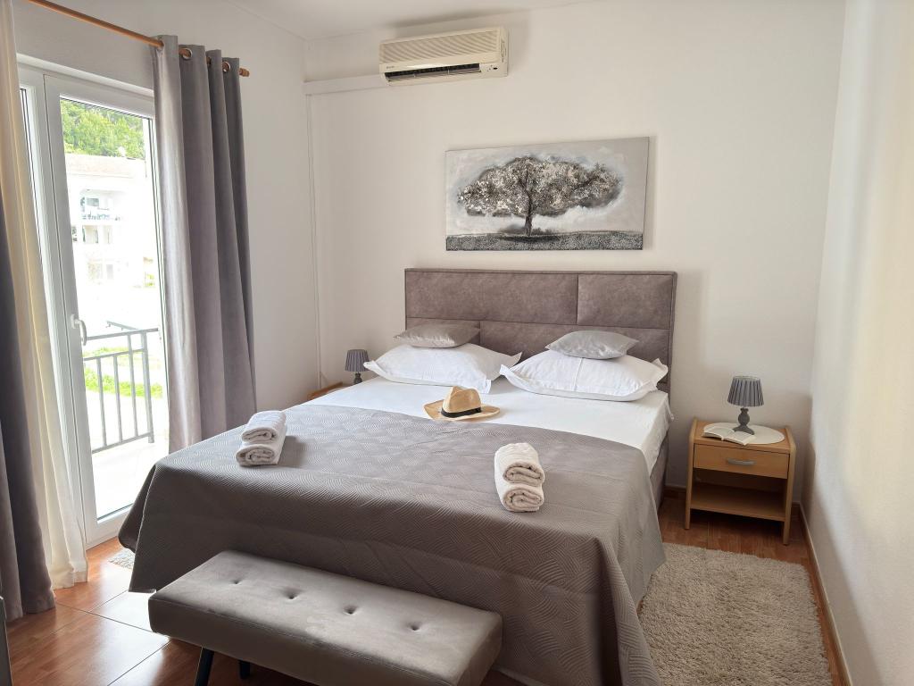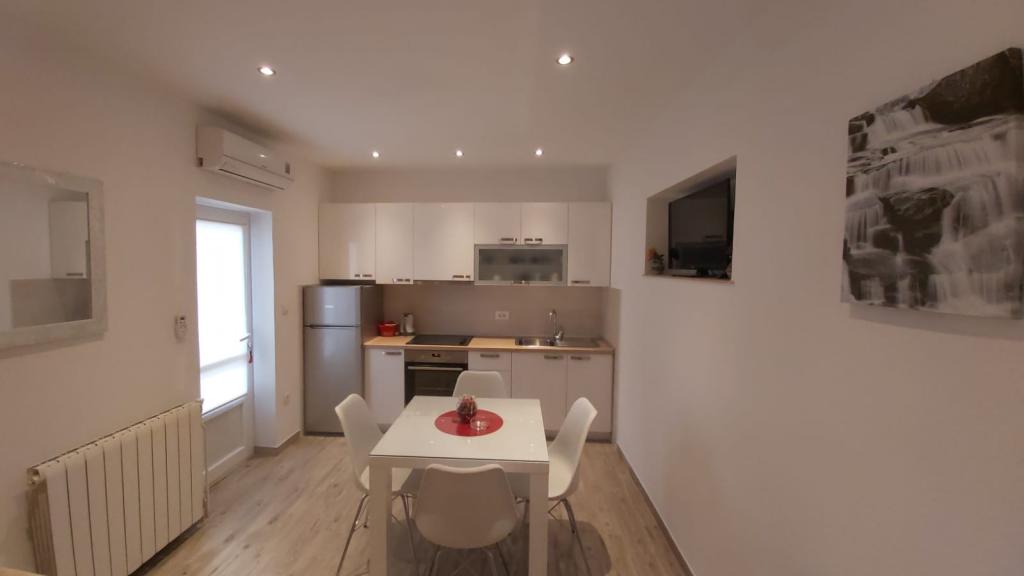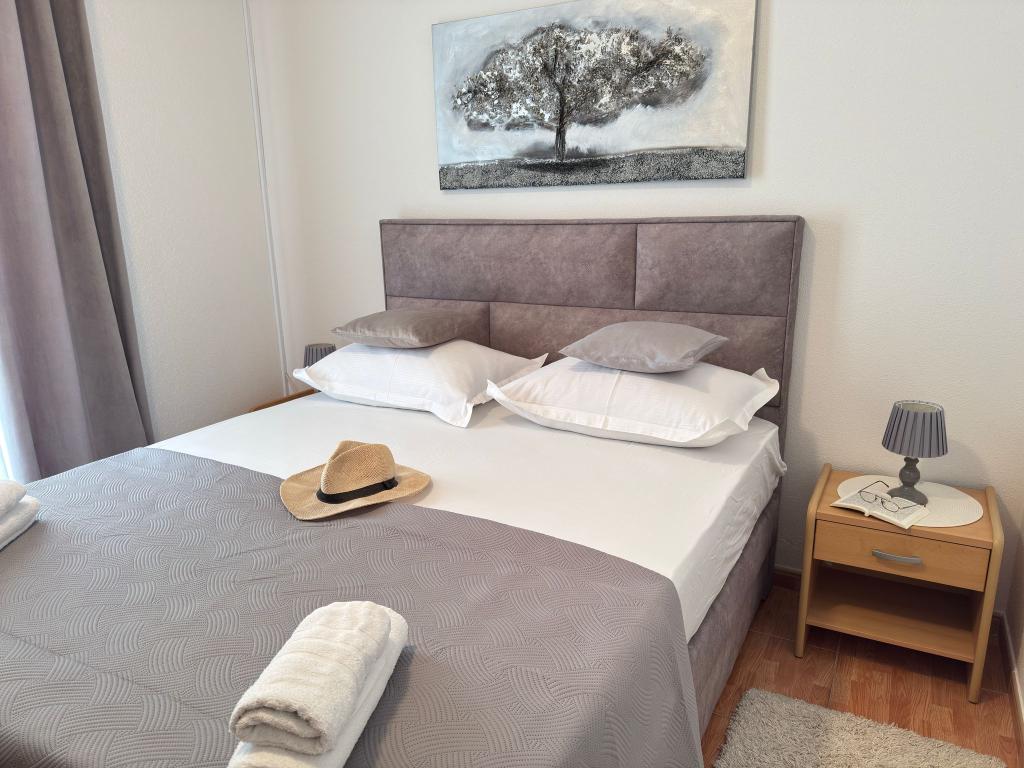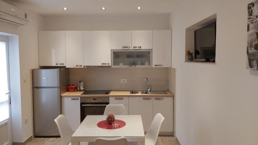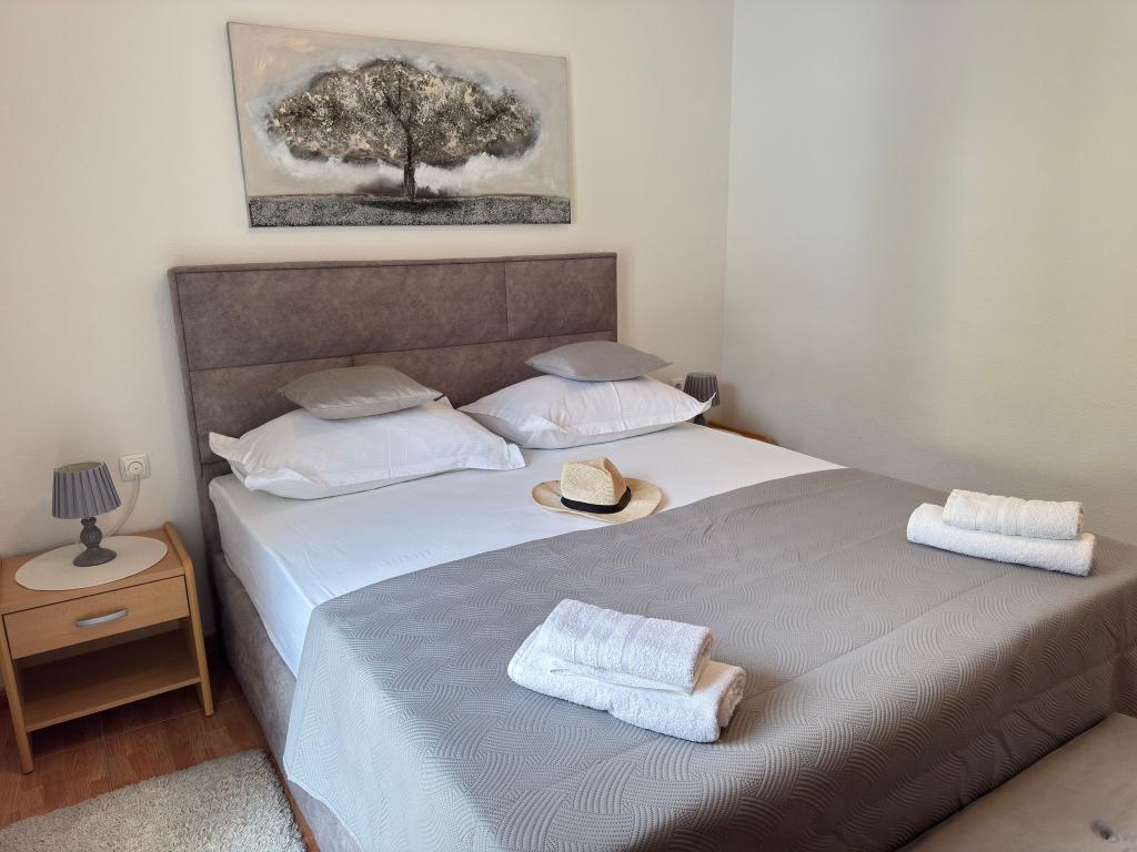 Bardzo fajny apartament z widokiem na morze. Duża kuchnia z wyposażeniem. Duży taras. Blisko do portu i plaży, 5 min spacerkiem. Obok lekarz, piekarnia i sklepik. Bardzo mili i pomocni właściciele. Wstsli do nas o 5 rano żeby się pożegnać. Apartament posiada miejsca parkingowe. Polecam