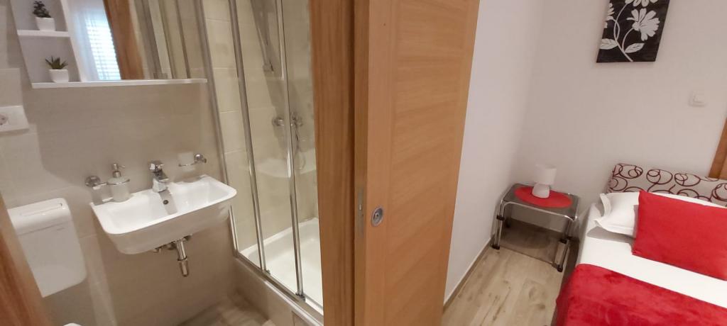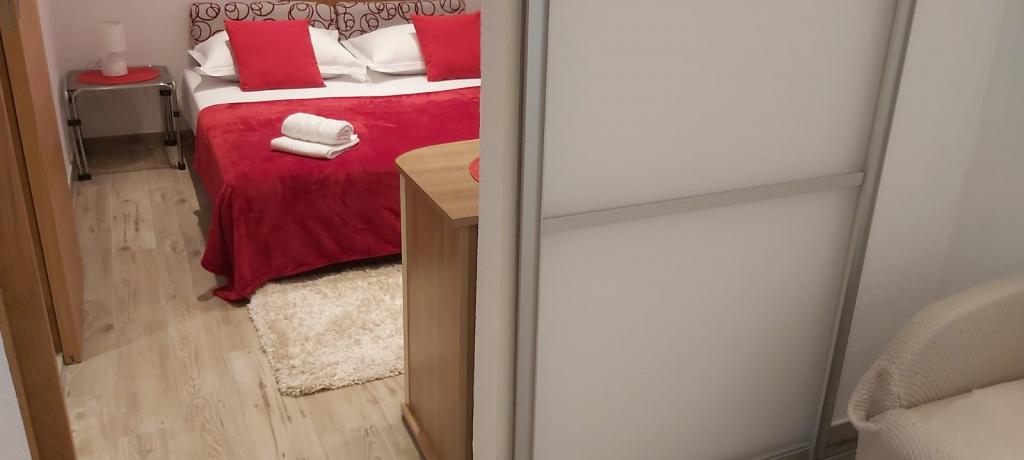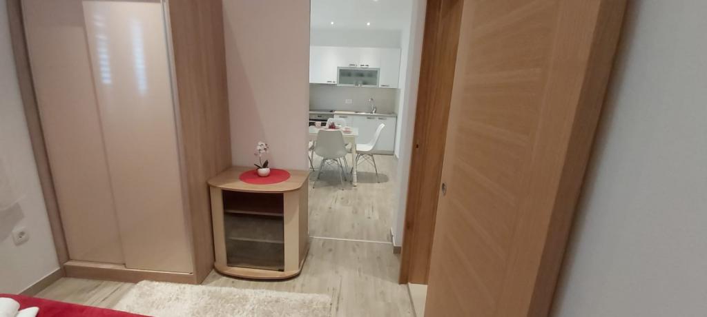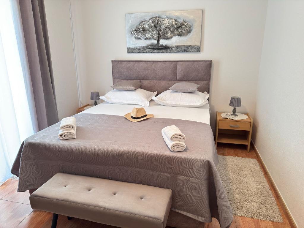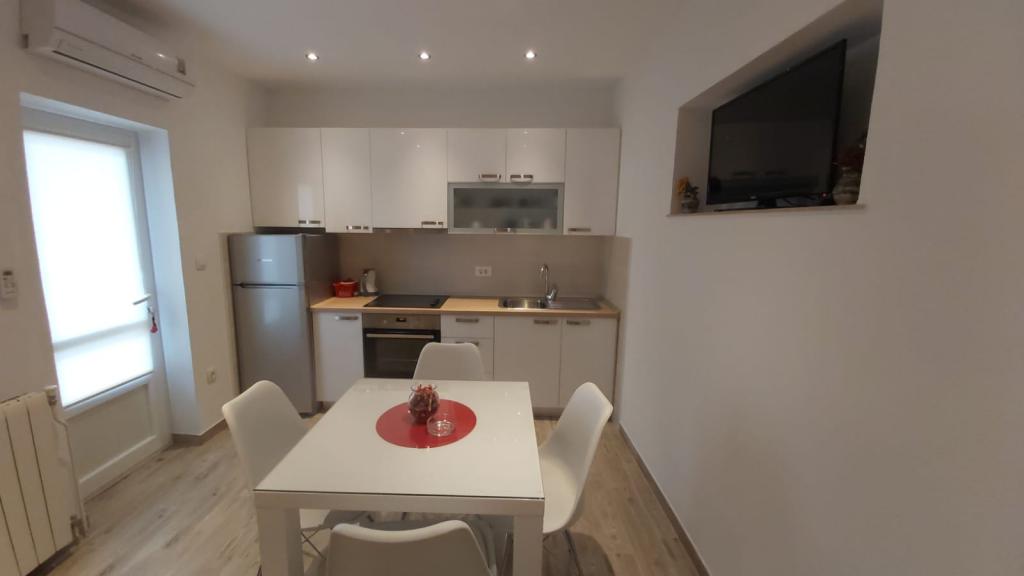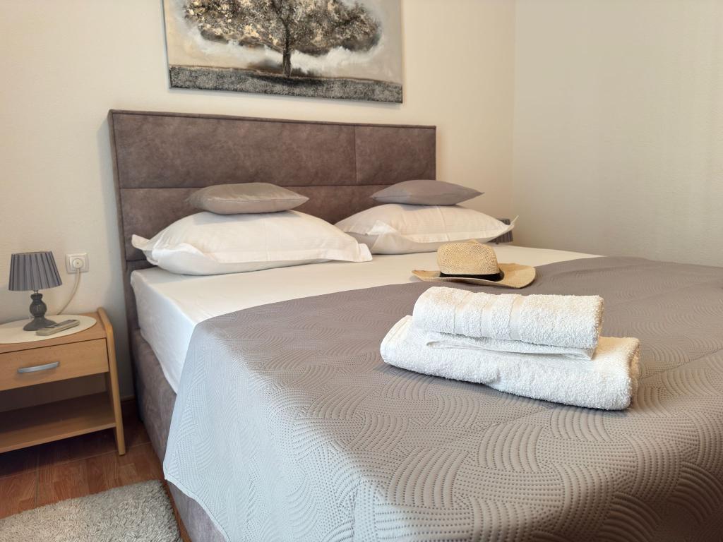 Bardzo fajny apartament z widokiem na morze. Duża kuchnia z wyposażeniem. Duży taras. Blisko do portu i plaży, 5 min spacerkiem. Obok lekarz, piekarnia i sklepik. Bardzo mili i pomocni właściciele. Wstsli do nas o 5 rano żeby się pożegnać. Apartament posiada miejsca parkingowe. Polecam