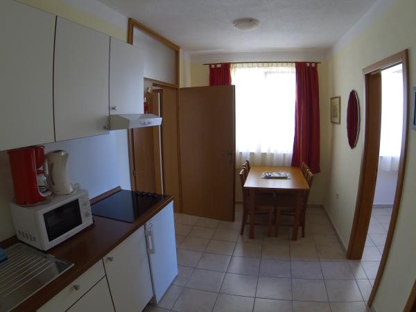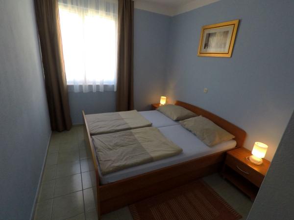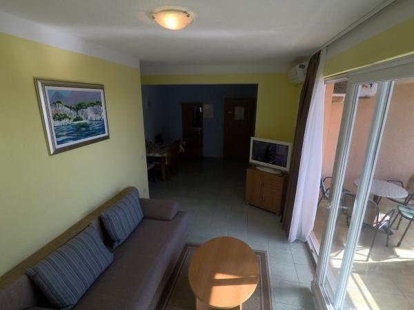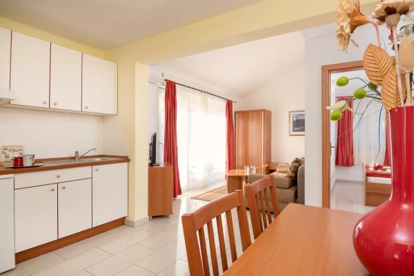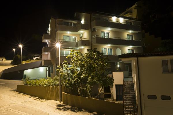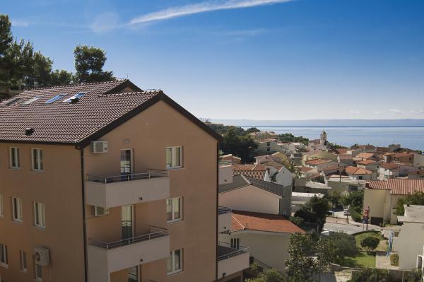 Opłata jest wliczone w cenę.Wszystkie 16 wille zostały zaprojektowane z myślą o maksymalnym zadowoleniu gości podczas wakacji. Składa się z salonu, sypialni, w pełni wyposażonej kuchni, jadalni i przestronnej łazienki. Oprócz stałych łóżek dodatkowe łóżka lub łóżeczka dziecięce są dostępne na życzenie. Apartamenty posiadają balkon lub taras, większość z nich z pięknym widokiem na morze i wyspy Hvar i Brac lub na górze Biokovo.