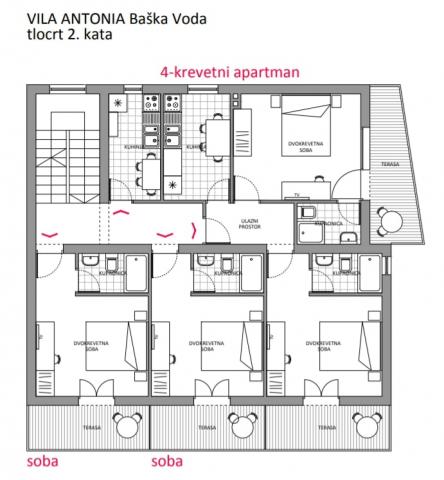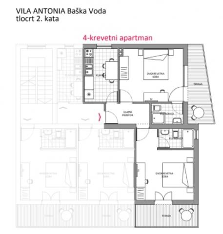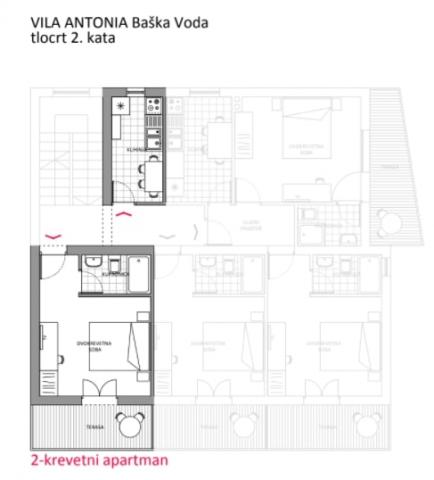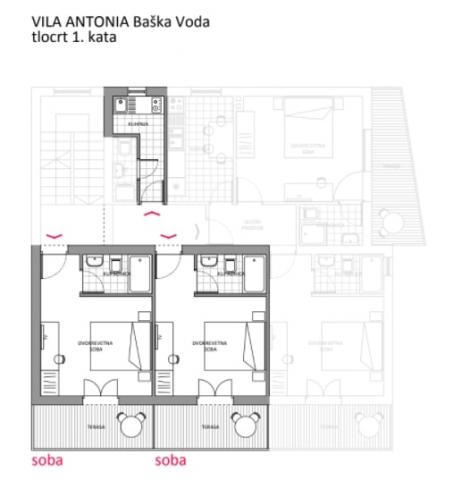 Villa Antonia znajduje się w samym centrum miasteczka Baška Voda, zaledwie parę kroków od plaży miejskiej. Oprócz dobrego usytuowania, Villa Antonia oferuje swoim gościom nowoczesne i nowo urządzone pokoje i apartamenty. Wszystkie pokoje są klimatyzowane i mają dostęp do bezpłatnego internetu. Ponadto, na terenie Villi Antonia znajduje się bezpłatny parking dla wszystkich gości.
