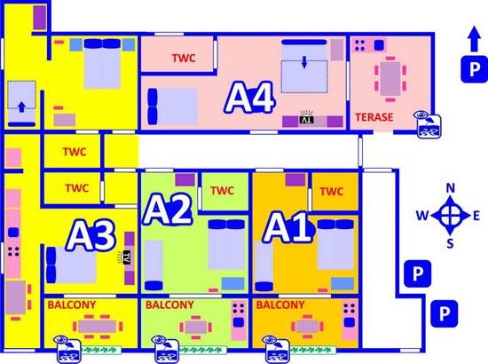 Apartament dla czterech osób z dwoma dostawkami (120 m2)