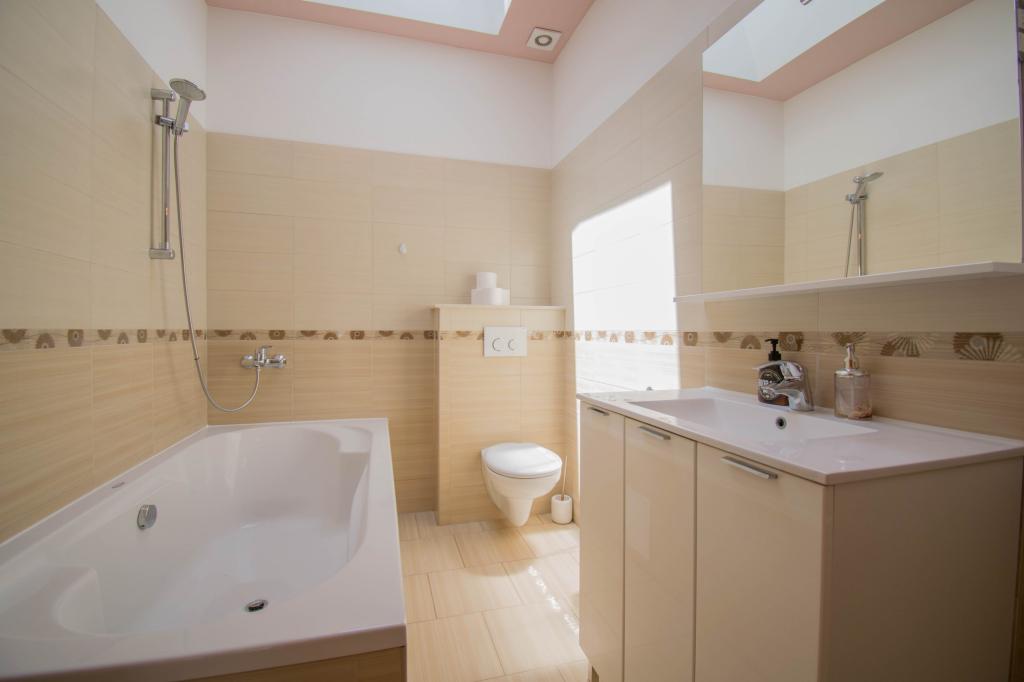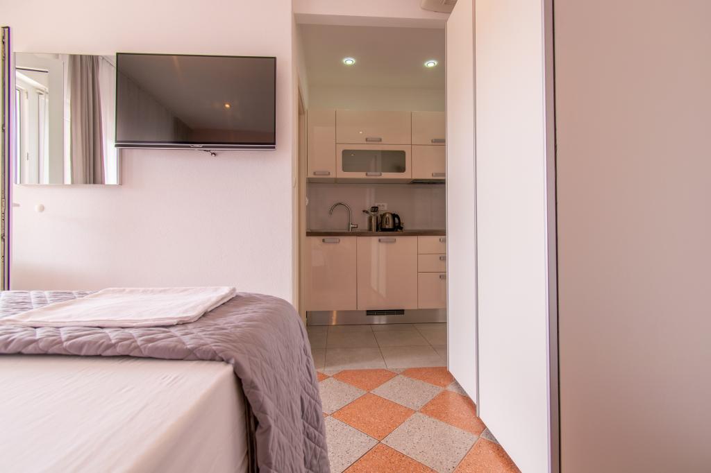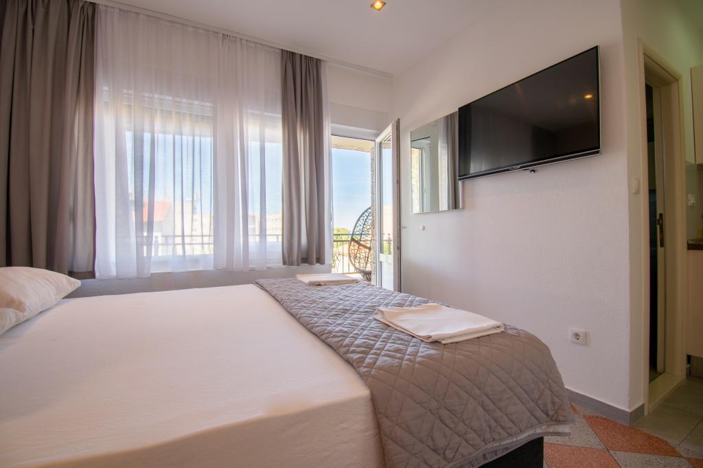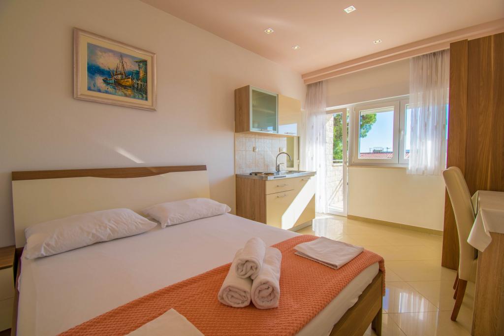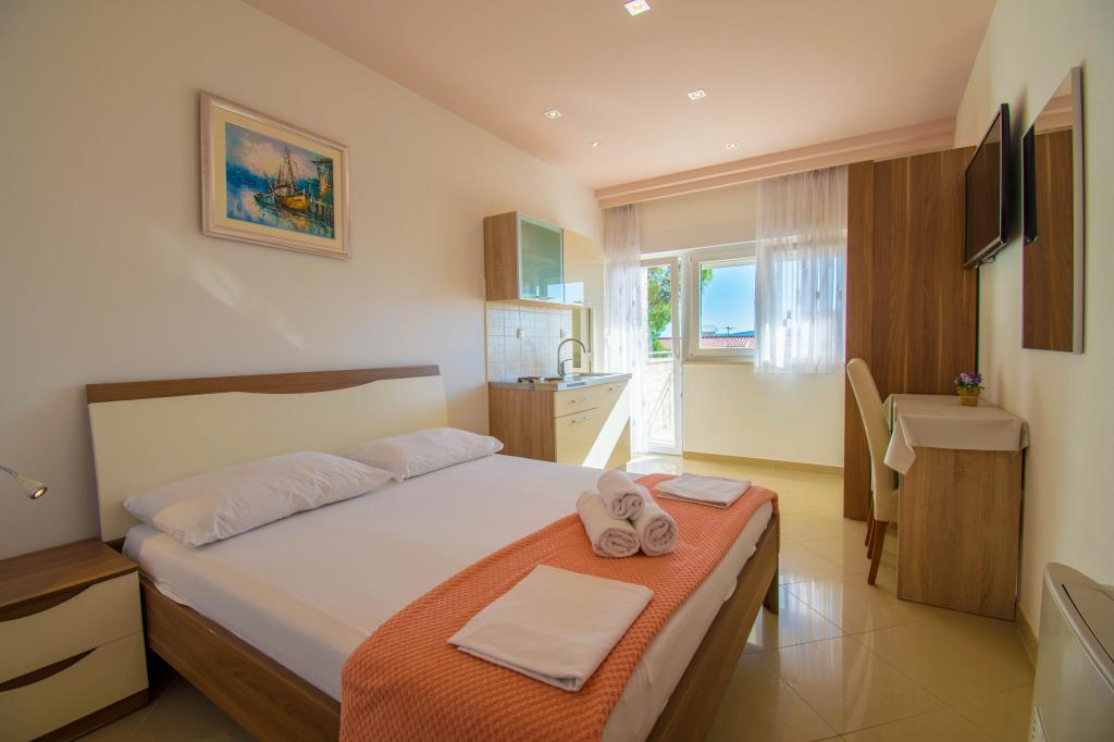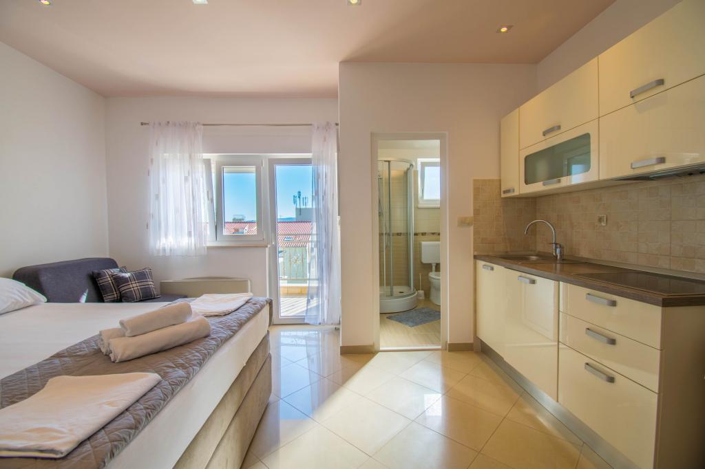 Mieszkaliśmy w apartamencie typu studio 2+2. Mieszkanie jest takie samo jak na zdjęciach, bardzo czyste i schludne, cała pochwała dla mieszkania i jego utrzymania. Gospodyni jest bardzo sympatyczna, nie nachalna i zawsze pomoże jeśli tego potrzebujesz... Z balkonu w mieszkaniu roztacza się wspaniały widok, widok urzekający. Jesteśmy zachwyceni, a dzieci naprawdę dobrze się bawiły. Z całego serca polecam każdemu, nie pożałujecie!