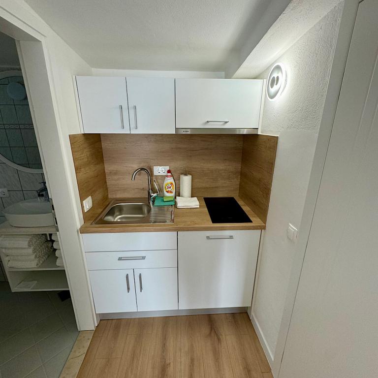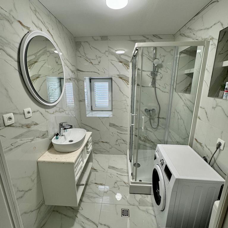 Villa Rozika znajduje się bezpośrednio przy głównej plaży w Baška Voda, plaża nazywa się Nikolina! Dla każdej jednostki w Willi zapewniliśmy parking (parking na zewnątrz jest bezpłatny, a parkowanie w garażu wymaga rezerwacji i jest płatne dodatkowo 20 €/dzień. Parking znajduje się 300 m od Willi i służy do zameldowania i wymeldowania na zewnątrz, istnieje możliwość parkowania bezpośrednio przed budynkiem. Oferujemy także usługę prania (za opłatą). (również podłączony do WhatsApp i Viber).