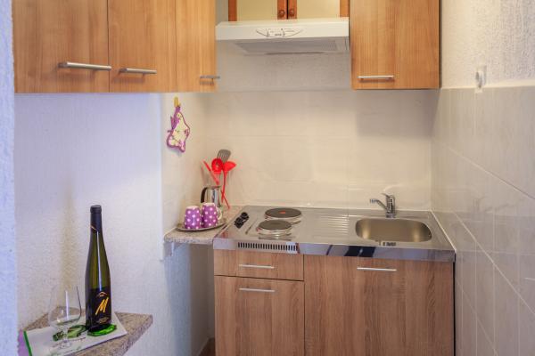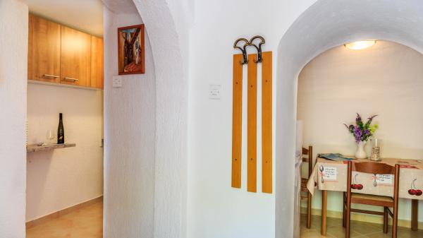 Pięknie odnowiony, grube mury zachować chłodną atmosferę pobytu i snu. W cichym otoczeniu domu w starej części miasta, tylko kilka kroków metrów od głównej promenady ulicy z tawern i barów. Kuchnia jest mała, ale więcej niż wygodne dla dwóch osób z piecem na dwóch grzejnej. Może nie byle ostry nóż do chleba i mięsa. W spokojnej części mieszkania jest ładny taras z winorośli, które daje cień w upalne dni. Byliśmy w tej cenie więcej niż zadowolony, jak również łatwość obsługi z właścicieli jest godne uwagi :)