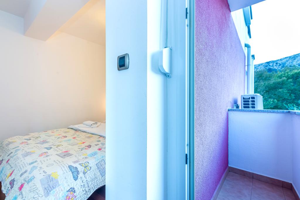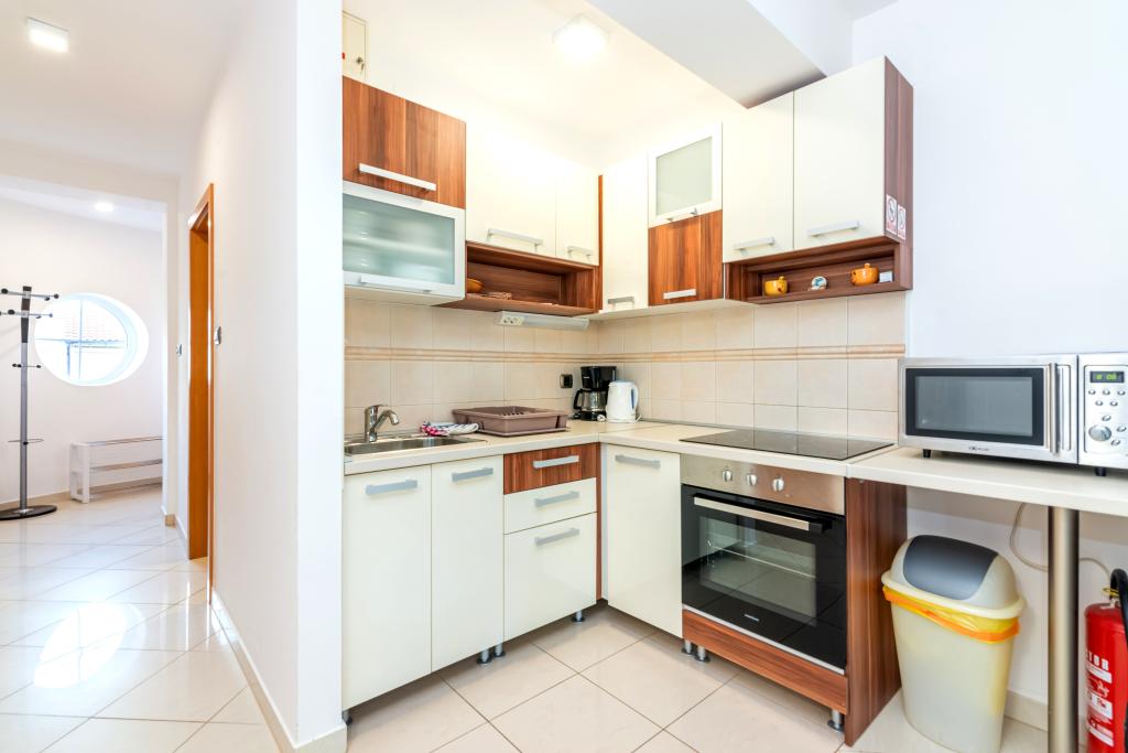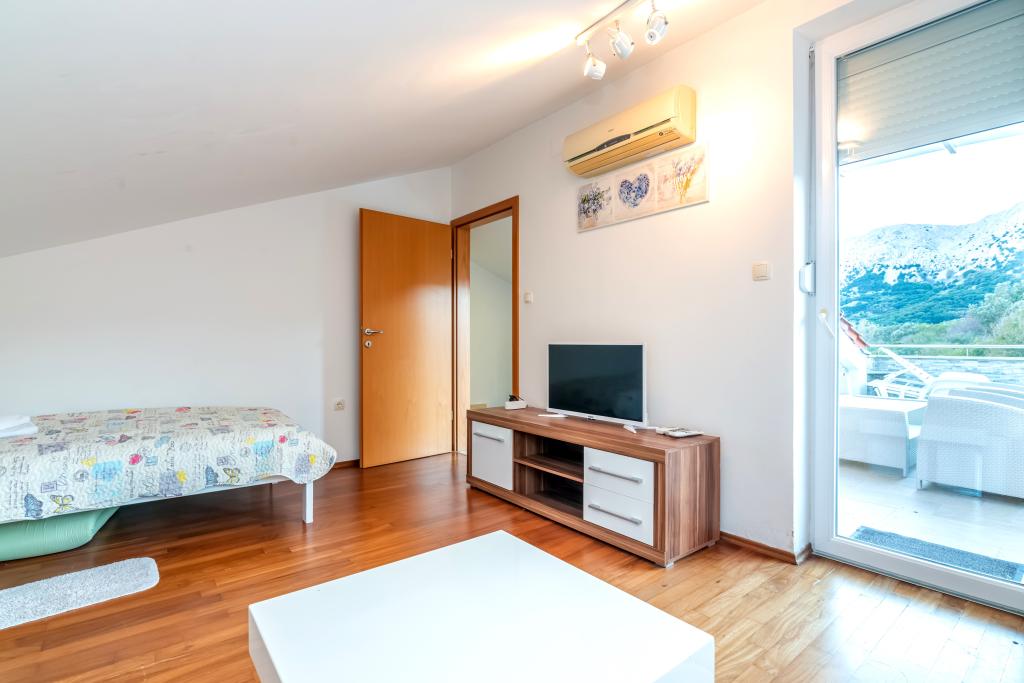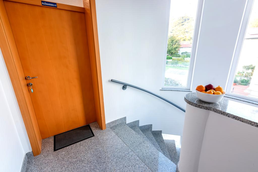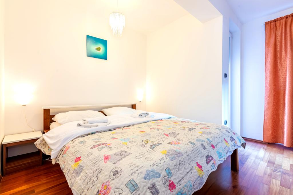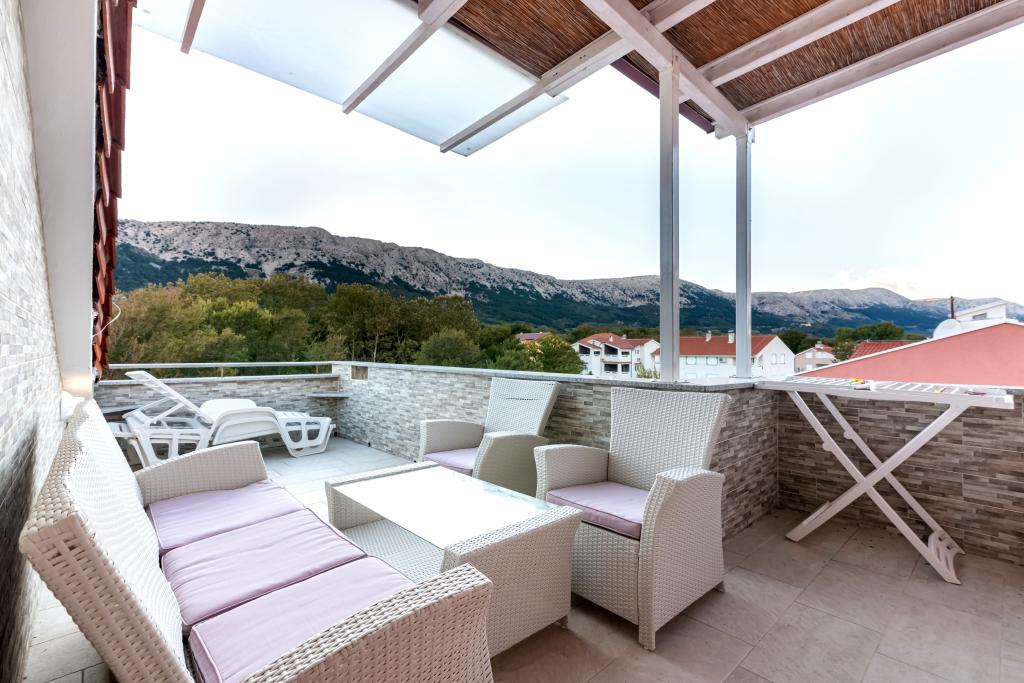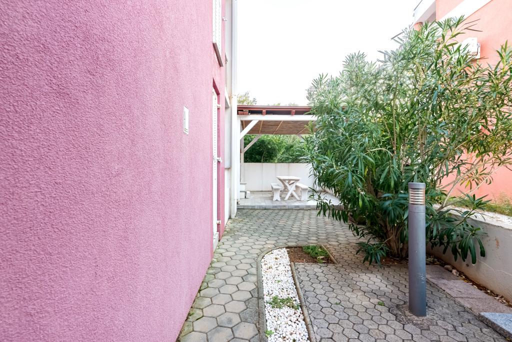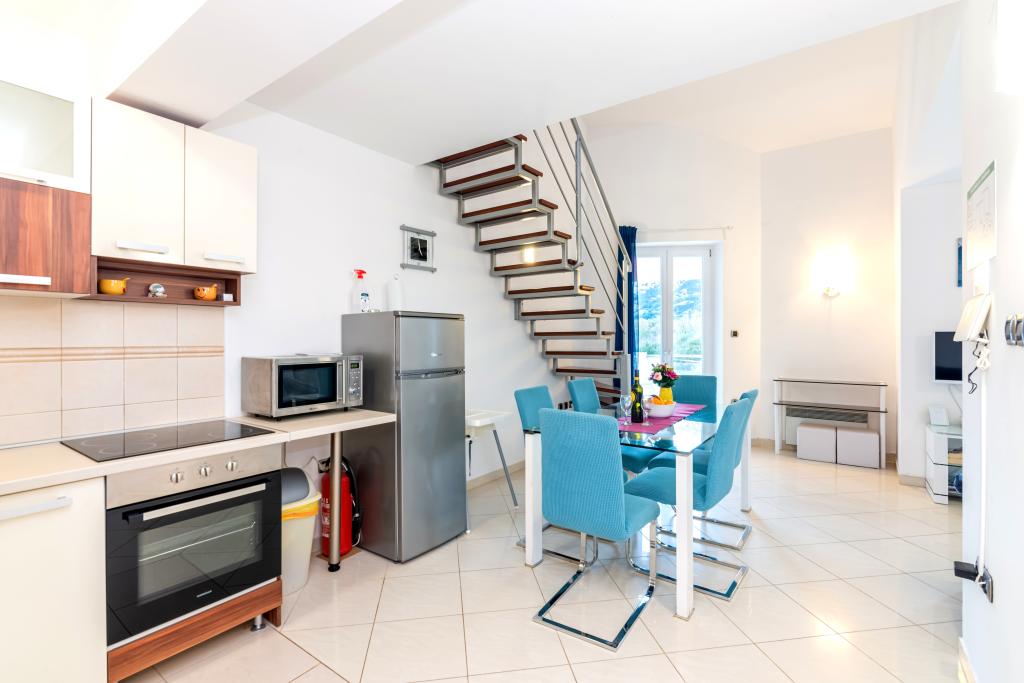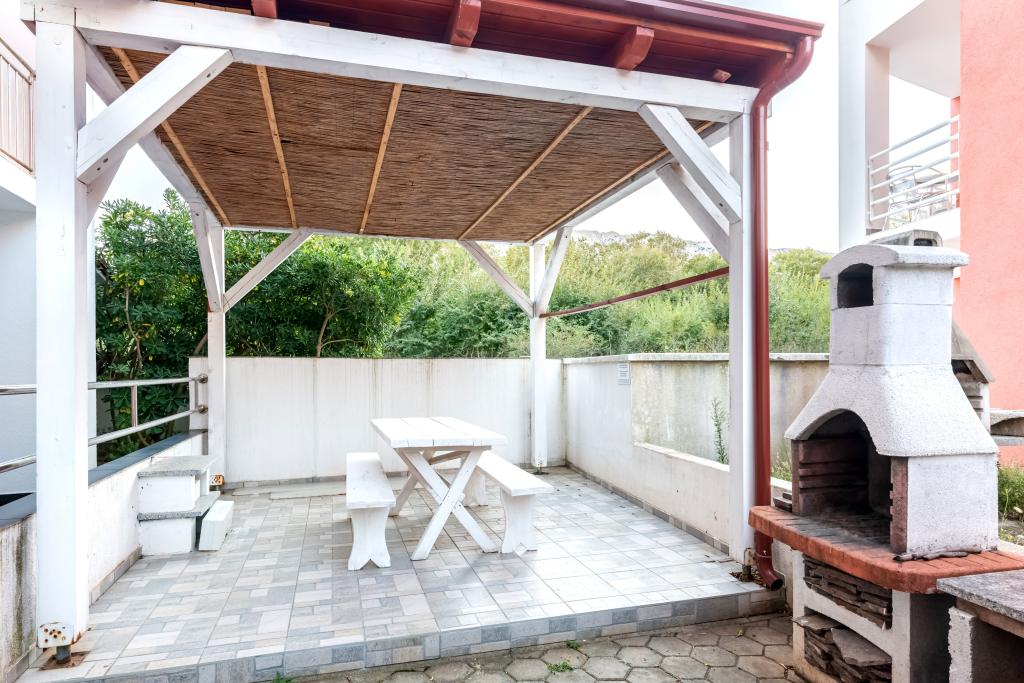 Mieszkanie znajduje się na 2. i 3. piętrze. Posiada 2 pokoje dwuosobowe z podwójnymi łóżkami, 1 pokój dwuosobowy z pojedynczymi łóżkami, pokój dzienny z sofą dla 2 osób, 2 łazienki, w pełni wyposażoną kuchnię i jadalnię. Apartament ten położony jest około 3 minuty spacerem od centralnej plaży. Ten nowoczesny apartament położony jest w spokojnej okolicy i wyposażony jest w 3 klimatyzatory, bezpłatny bezprzewodowy dostęp do Internetu, telewizję satelitarną, przestronny taras oraz bezpłatny prywatny parking przed domem. W pobliżu obiektu znajduje się także niewielki sklep i restauracja.