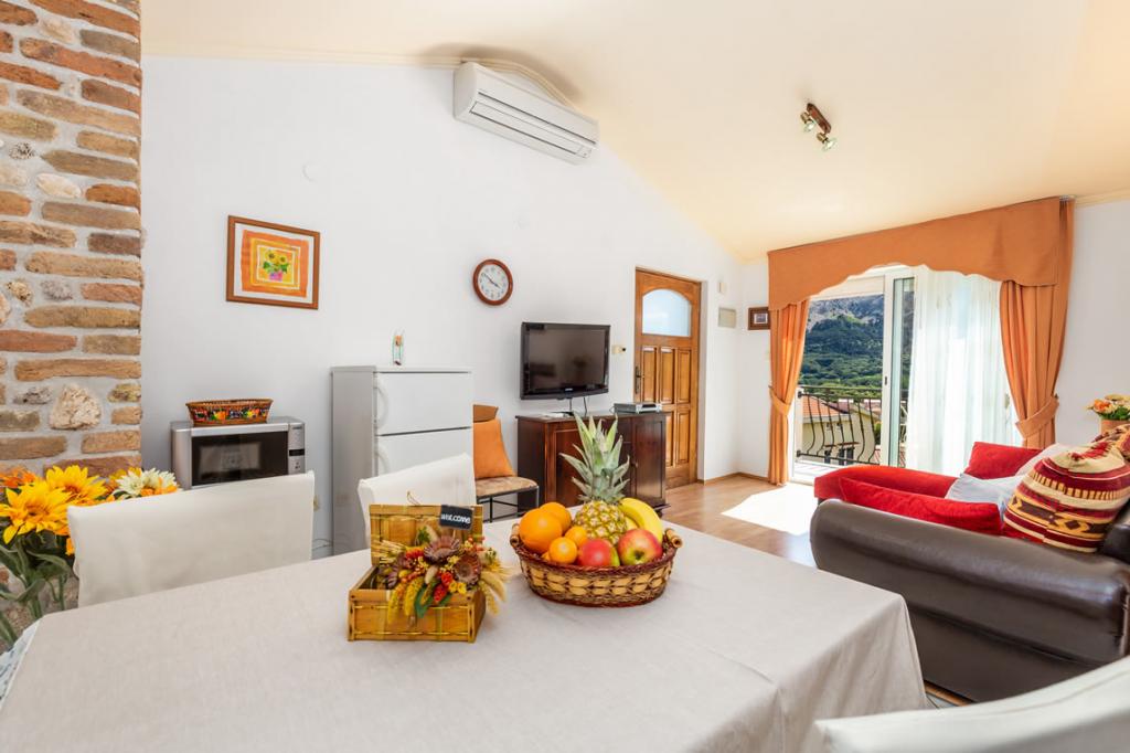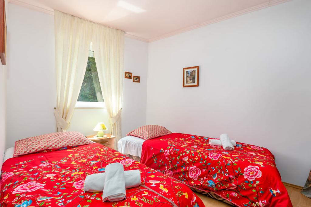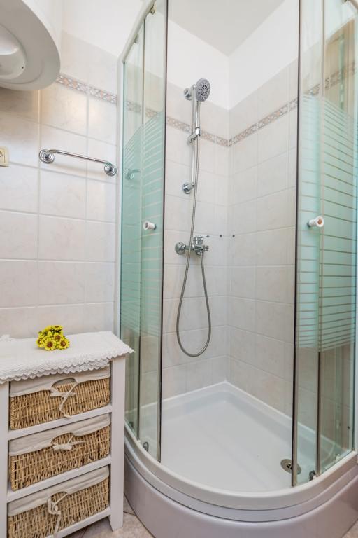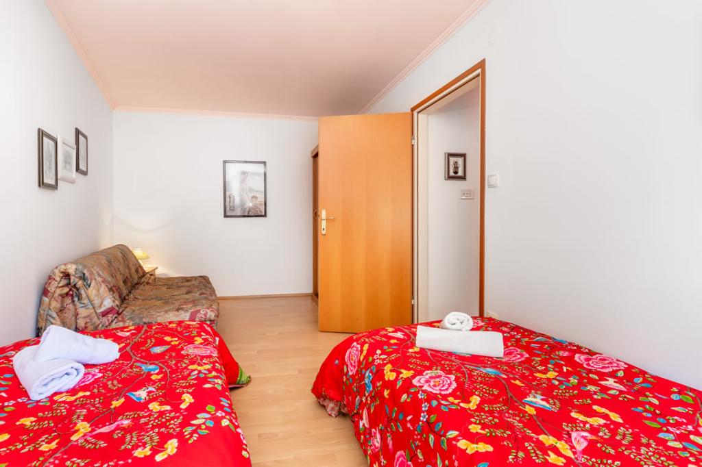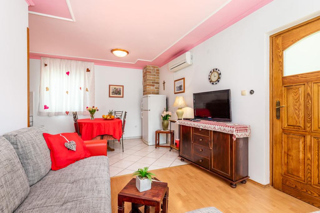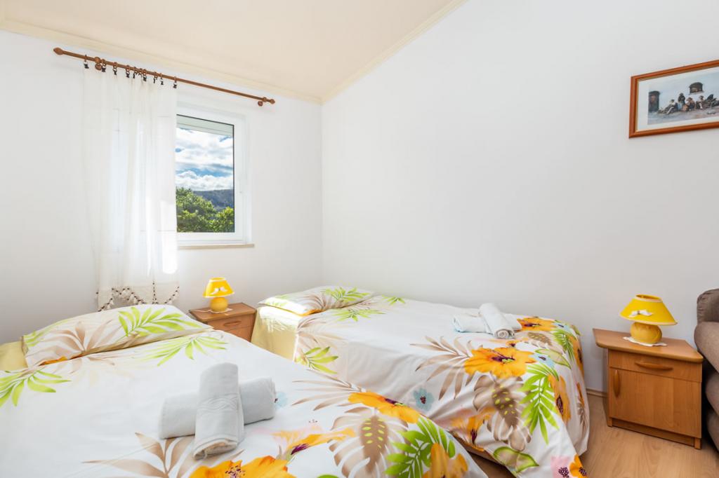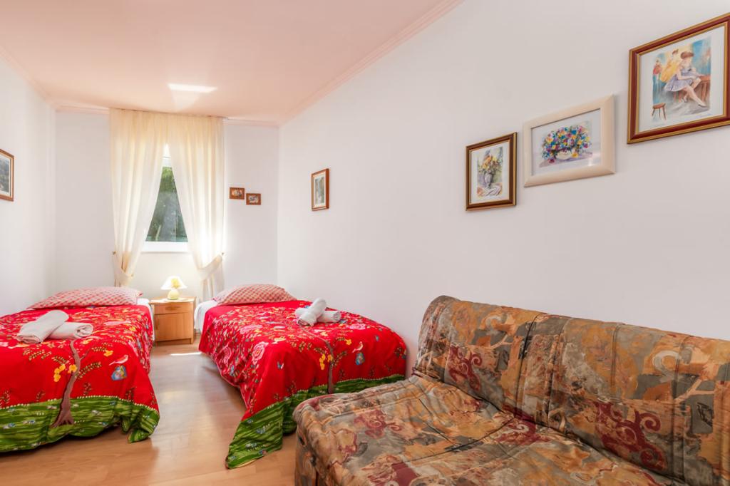Apartamenty Patricia znajdują się w spokojnej okolicy, blisko centrum, 5 minut spacerem (350 metrów) od plaży, która ma europejską niebieską flagę. Apartamenty mają 60 metrów kwadratowych i są wyposażone dla 4-7 osób. Apartamenty zostały niedawno odnowione i składają się z sypialni z podwójnym łóżkiem, jednego pokoju z dwoma lub trzema łóżkami, łazienki z WC, przestronnej iw pełni wyposażonej kuchni oraz salonu z fotelem i telewizją satelitarną. Każdy apartament posiada balkon. Goście apartamentu mają grill z tarasem otoczony zielenią i miejsce parkingowe przed domem. Apartament posiada klimatyzację i internet.