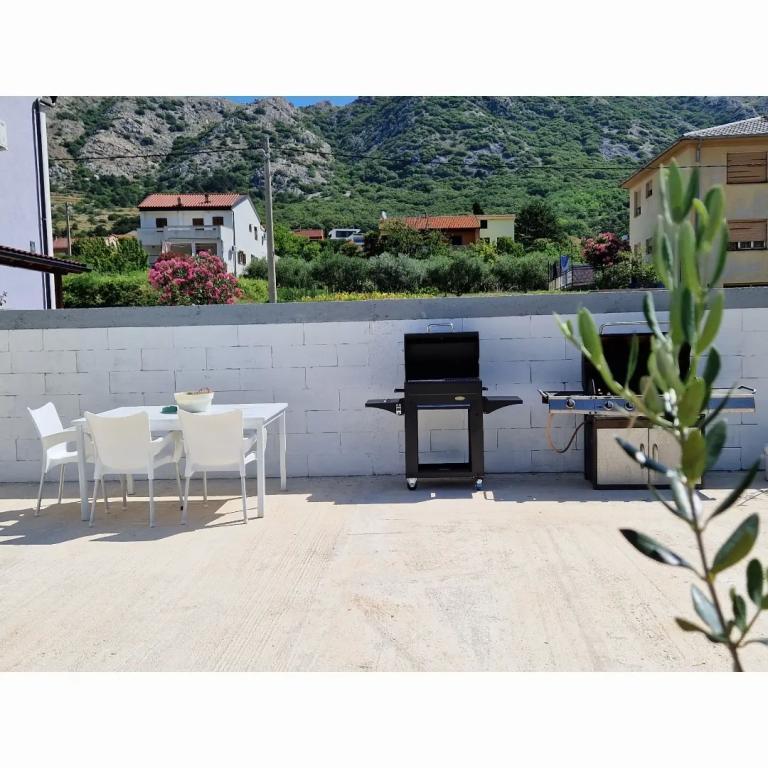 Bardzo miła i przyjemna atmosfera mieszkania, apartament posiada klimatyzację i jest wygodny dla dwóch osób. Basen schludny i czysty, a powietrze lepsze niż w centrum Baški. Mieszkanie jest czyste i zawsze mieliśmy czyste ręczniki. Polecamy wszystkim, którzy mają dobrych i gościnnych gospodarzy, którzy dla nas, gości, nie stanowią problemu!