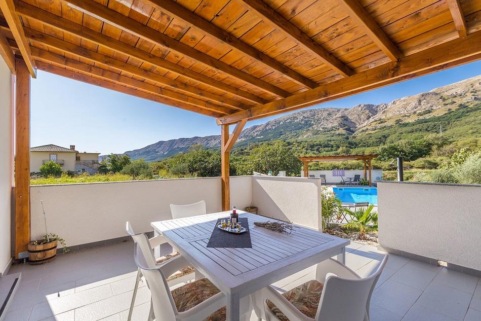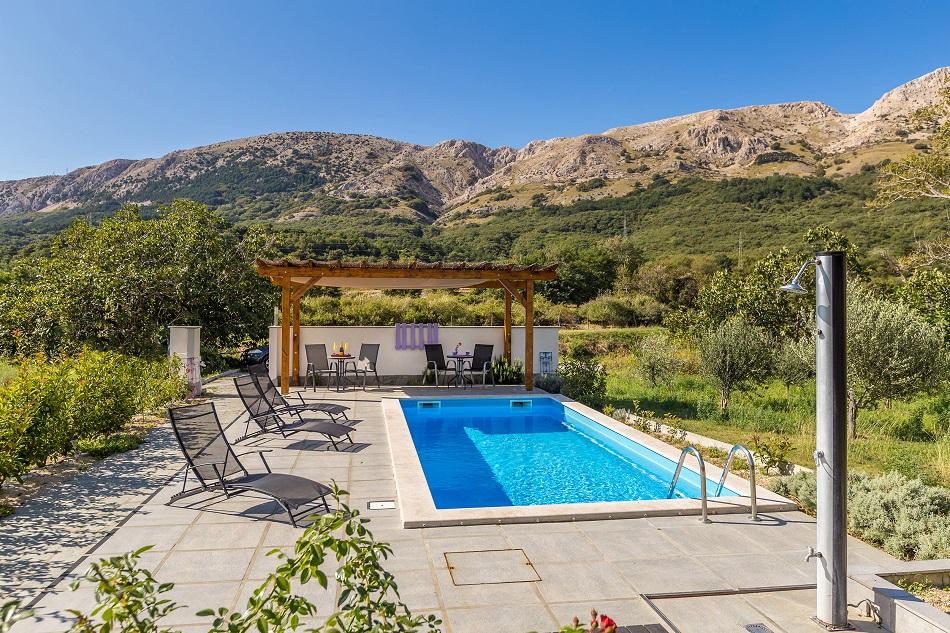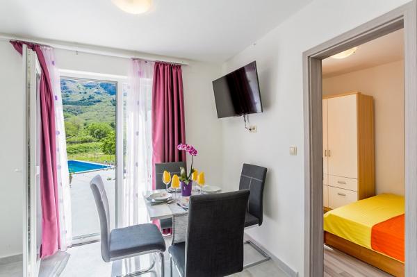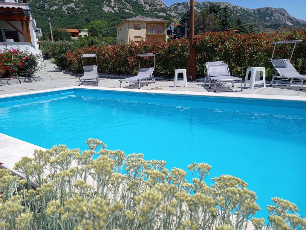 Ładnie położone miejsce, z dala od tłumów w spokojnej okolicy z widokiem na piękne góry. Apartament dla 5 osób ładny, czysty, przestronny, dobrze wyposażony z dużym tarasem. Basen jest czysty i dość duży, raj dla dzieci. Przy basenie można popływać i zrelaksować się przy kawie lub lampce wina. Możesz wybrać się na wycieczki rowerowe np. do Baśki lub górskie wycieczki - jeśli lubisz spacery w upale :) Właściciele otwarci i sympatyczni.