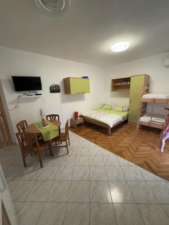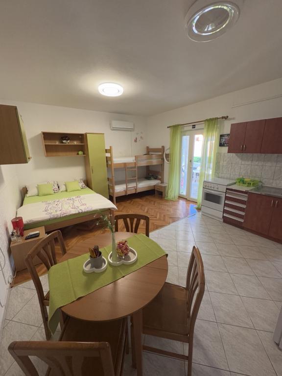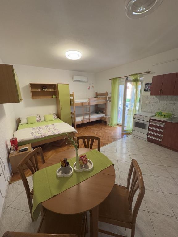 WAŻNY!!! Apartament Andrea znajduje się w mieście Rijeka, a nie na wyspie Krk. W okolicy Rijeki (w promieniu 30 km) znajduje się wiele pięknych miejsc z pięknymi plażami. Apartamenty Anita znajdują się w miejscowości Jurandvor, niedaleko Baški. Obiekt oddalony jest zaledwie o 1200 m od jednej z najpiękniejszych piaszczystych plaż nad Adriatykiem. W apartamentach znajdziesz wszystko, czego potrzebujesz, aby Ty, Twoje dzieci i zwierzęta mogli w pełni cieszyć się wakacjami u nas. W każdym apartamencie znajduje się kuchnia (czajnik, toster, ekspres do kawy, naczynia, płyn do mycia naczyń), łazienka (ręczniki, mydło do rąk), sypialnia z pościelą, taras, telewizja satelitarna, Wi-Fi, klimatyzacja. Można również korzystać z żelazka i pralki, a w App 2 i 3 znajduje się także zmywarka. Miejsca parkingowe dla samochodów znajdują się wokół domu. Przed domem znajduje się plac zabaw dla dzieci. Podczas gdy Twoje dzieci będą się bawić, Ty możesz zrelaksować się przy grillu. I oczywiście Twoje zwierzęta są zawsze mile widziane. :)