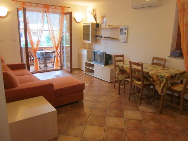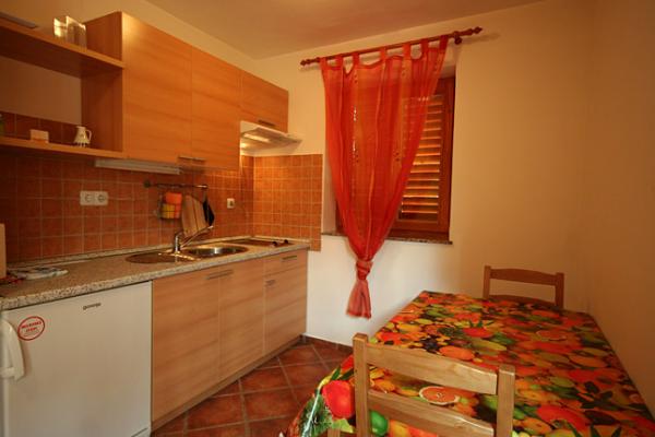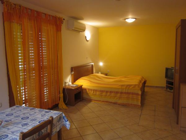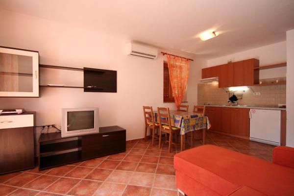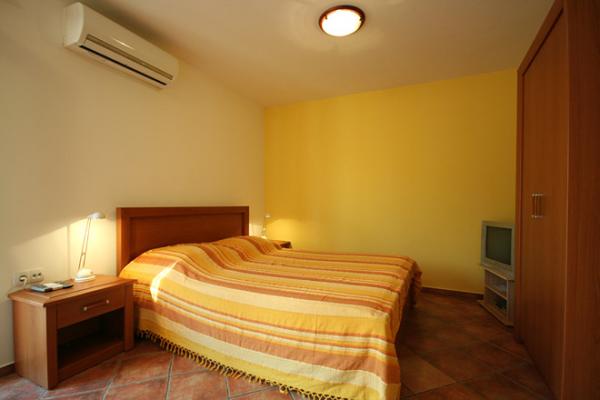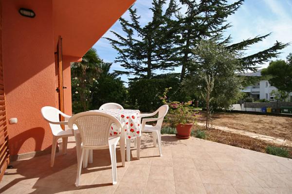 W tym samym budynku znajdują się 4 mieszkania. Spośród nich dwa duże apartamenty dla maksymalnie 4 osób, każdy z 42 m2. W tylnej części domu znajdują się 2 apartamenty typu studio dla 2 osób. W budynku znajduje się parking z miejscem parkingowym dla każdego mieszkania. Wszystkie apartamenty są klimatyzowane i wyposażone w telewizję satelitarną. Budynek apartamentowy położony jest zaledwie 10 minut spacerem od słynnej plaży głównej (1800 m długości, która jest szczególnie odpowiednia dla dzieci), a 10 minut spacerem do centrum miasta. W pobliżu znajdują się dwa sklepy, w odległości 100 metrów, a to bardzo dobra restauracja. Sprzątanie jest wliczone w cenę, pościel zmieniana jest co 7 dni.