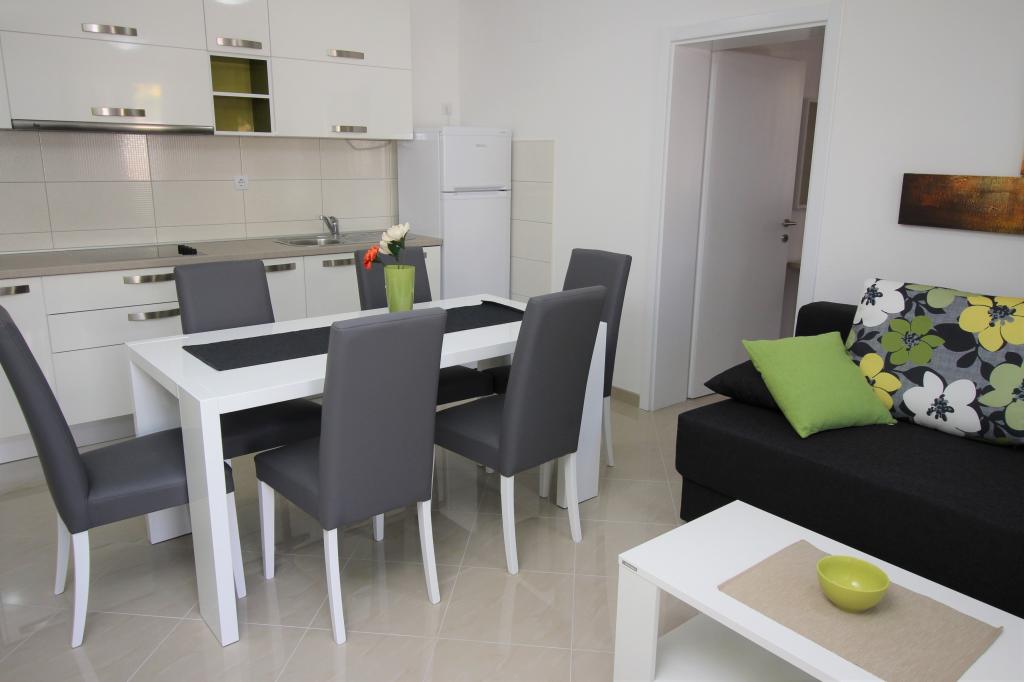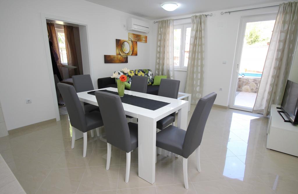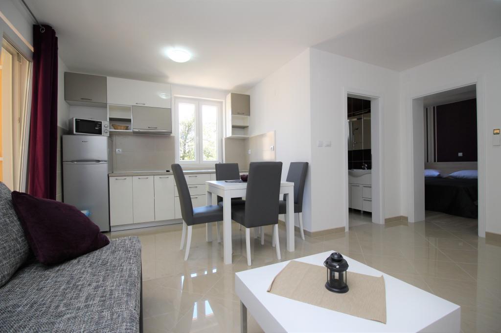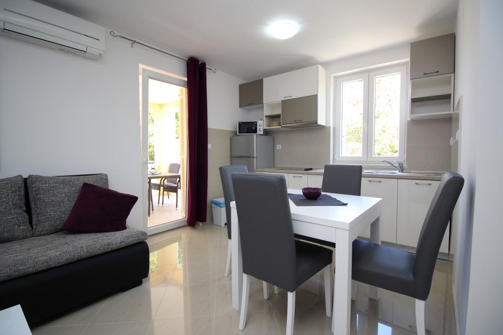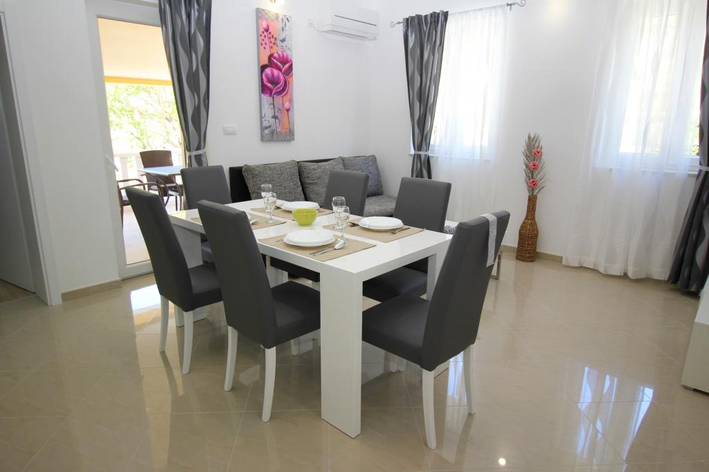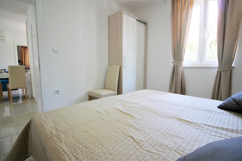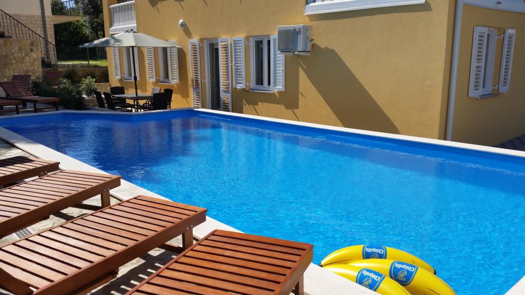 Nowocześnie urządzone apartamenty, zaledwie 5 minut spacerem od pięknej plaży Vela, ze wspólnym odkrytym basenem i grillem. Dom oferuje 9 apartamentów wyposażonych w zmywarkę, pralkę, sejf, klimatyzację, internet i telewizję satelitarną. Do każdego apartamentu przynależy jedno miejsce parkingowe. Zwierzęta nie są mile widziane.