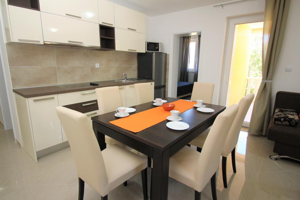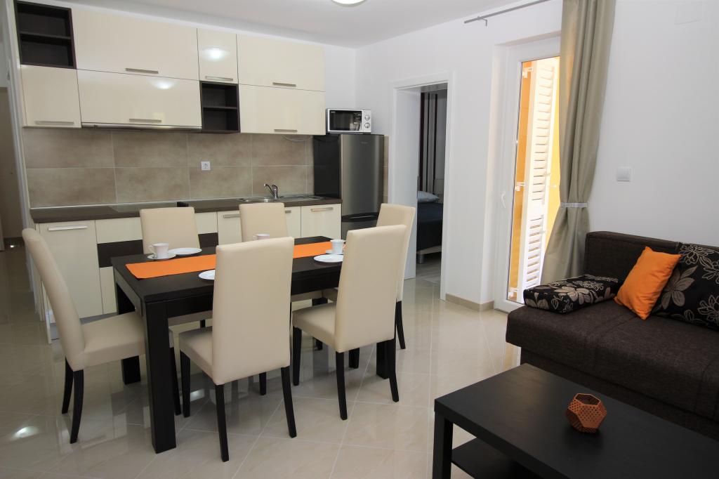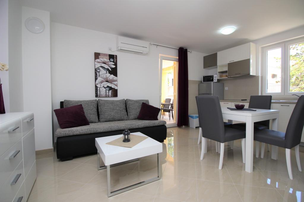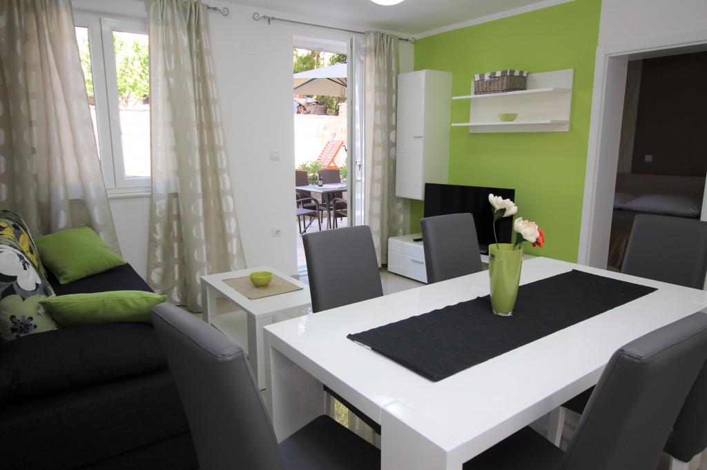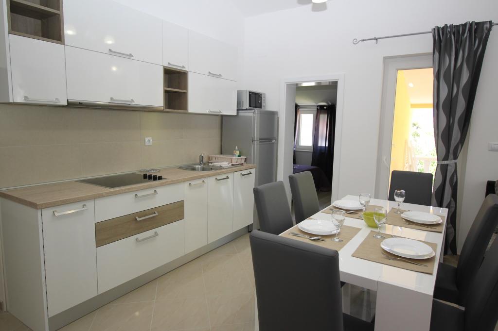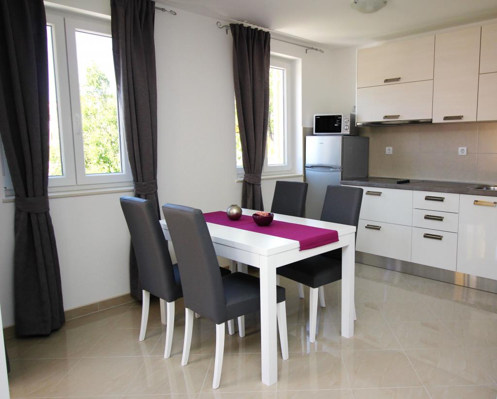 Nowocześnie urządzone apartamenty, zaledwie 5 minut spacerem od pięknej plaży Vela, ze wspólnym odkrytym basenem i grillem. Dom oferuje 9 apartamentów wyposażonych w zmywarkę, pralkę, sejf, klimatyzację, internet i telewizję satelitarną. Do każdego apartamentu przynależy jedno miejsce parkingowe. Zwierzęta nie są mile widziane.