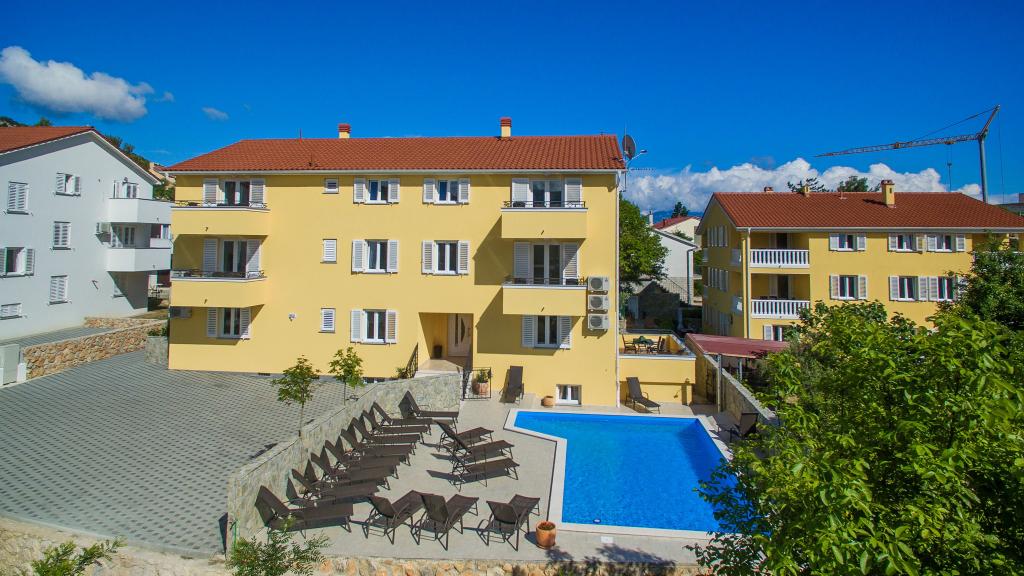 Nowocześnie urządzone apartamenty, zaledwie 300 metrów od pięknej plaży Vela Plaža, ze wspólnym odkrytym basenem i grillem. Dom oferuje 13 apartamentów, z których 4 znajdują się w piwnicy. Apartamenty w piwnicy mają dostęp do wspólnego tarasu (20 m²) na piętrze. Każdy apartament wyposażony jest w zmywarkę, pralkę, klimatyzację, internet i telewizję satelitarną. Goście mają do dyspozycji jedno miejsce parkingowe. Zwierzęta nie są akceptowane.