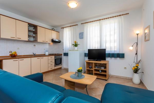 Apartamenty położone są w spokojnej części miejscowości Baska. Szeroko znane Bašćanska Piaszczysta plaża znajduje się zaledwie 200 m. Sklep znajduje się 100 m oraz restauracje 200 m. Oprócz pływania na pięknej plaży i pobliskich mniejszych plaż, istnieje możliwość Piesze i rowerowe na dobrze oznakowanych szlaków. W ogrodzie strzeżony parking dla każdego mieszkania i grillem. Życzymy miłego pobytu w naszych apartamentach.