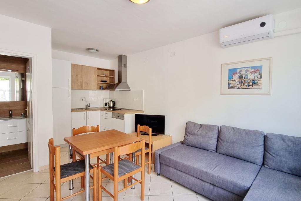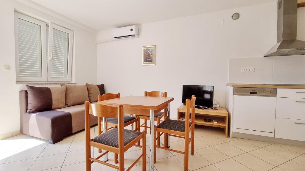 KwaterProsimy pamiętać, że rezerwacji można dokonać na minimum 4 noce od 01.03.-19.06., na minimum 7 nocy od 20.06.-04.09. i na minimum 4 noce od 05.09.-06.10. Ceny zostaną wyświetlone po wpisaniu żądanego okresu pobytu i liczby osób. Ceny według sezonu można zobaczyć pod cennikiem € (po prawej stronie, pod zdjęciami żądanej jednostki noclegowej). Dodatkowe koszty: rejestracja (5 EUR/osoba/jednorazowo). Zwierzęta domowe - dozwolone - na życzenie - (10 EUR/zwierzę/noc) W przypadku rezerwacji na stałe konieczna jest wpłata zaliczki (za pośrednictwem banku) w wysokości 30% całkowitej ceny apartamentu. Pozostała część opłaty za zakwaterowanie i rejestrację jest płatna po przyjeździe. Zameldowanie w apartamencie jest możliwe po godzinie 14:00, wymeldowanie do godziny 10:00.