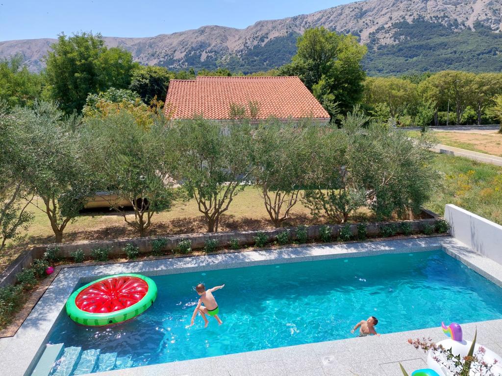 Nowocześnie urządzone iw pełni wyposażone apartamenty w nowym budynku z basenem. Przyjemna strefa relaksu wokół basenu. Dom położony jest w spokojnej okolicy w Bašce, 7 minut spacerem od placu Vela.